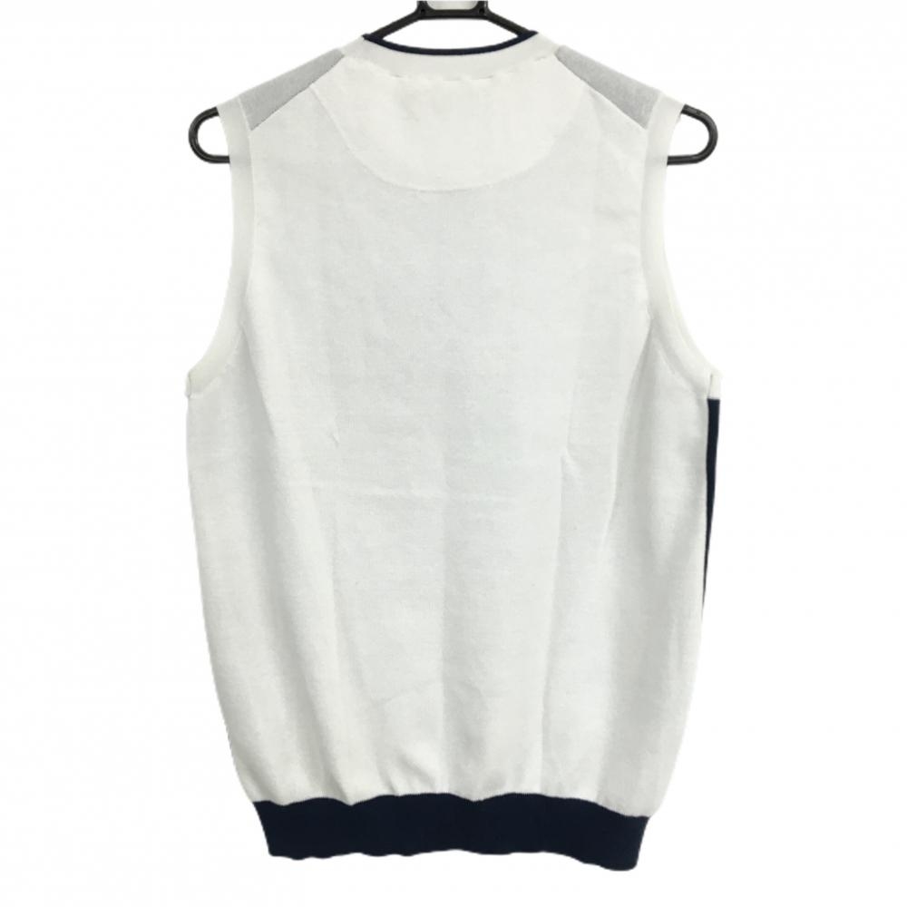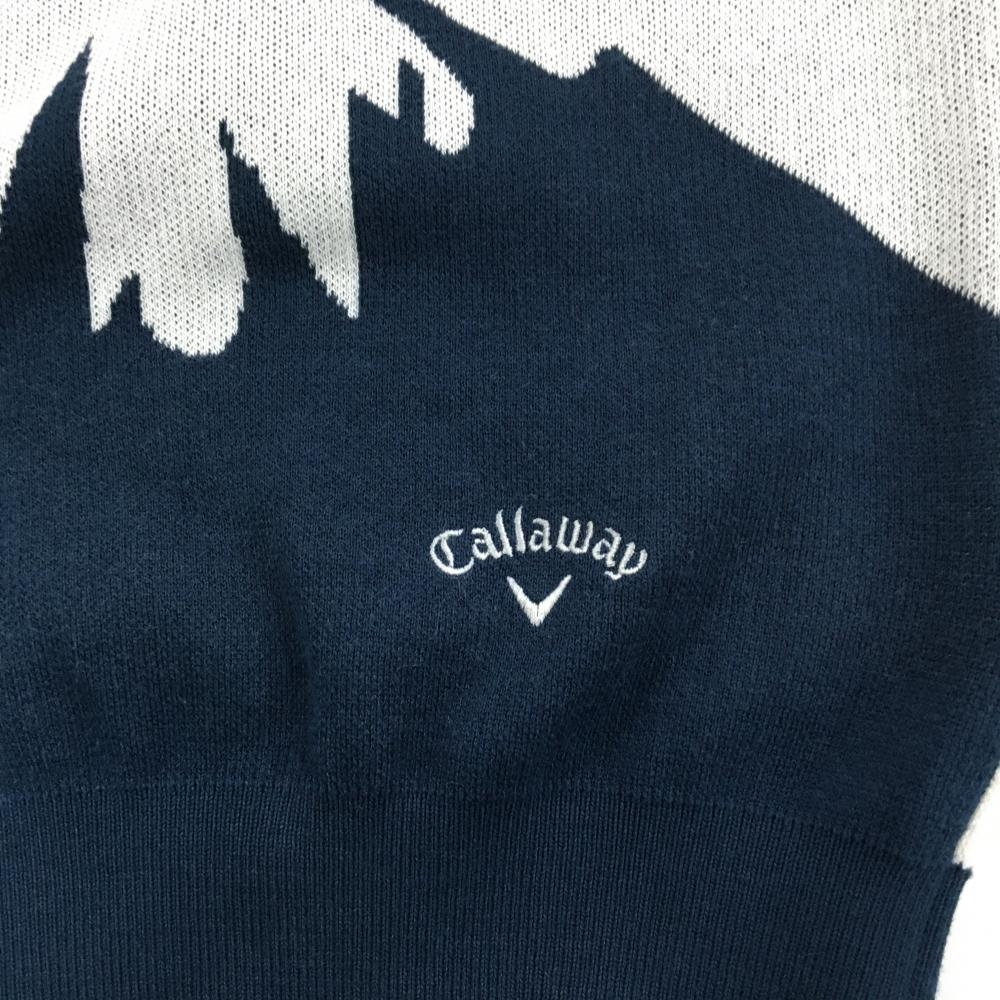 【超美品】キャロウェイ ニットベスト ネイビー×白 花柄 コットン混 レディース LL ゴルフウェア Callaway