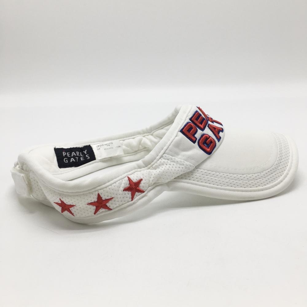 【美品】パーリーゲイツ サンバイザー 白×レッド 立体ロゴ FR ゴルフウェア PEARLY GATES