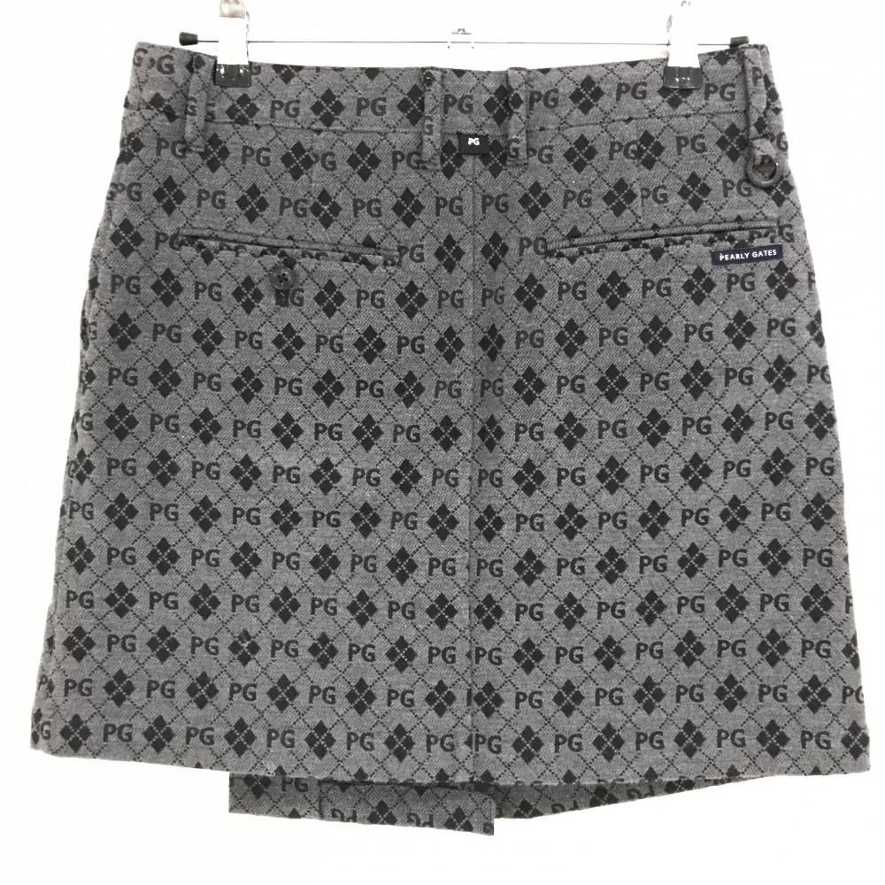 【超美品】パーリーゲイツ ラップスカート グレー×ネイビー アーガイル・ロゴ総柄 レディース 1(M) ゴルフウェア PEARLY GATES