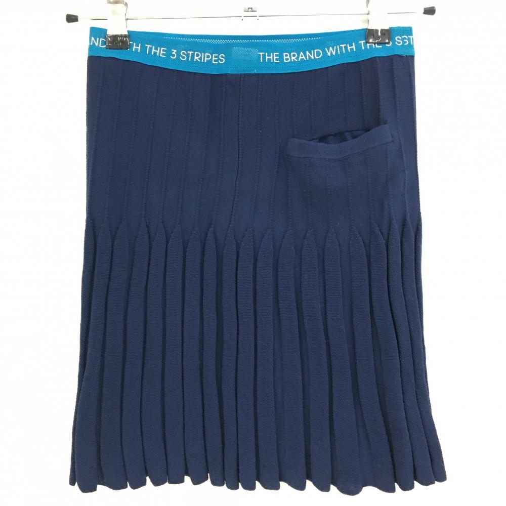 【美品】アディダス ニットスカート ネイビー×ブルー系 ウエスト英字ロゴライン レディース M ゴルフウェア adidas