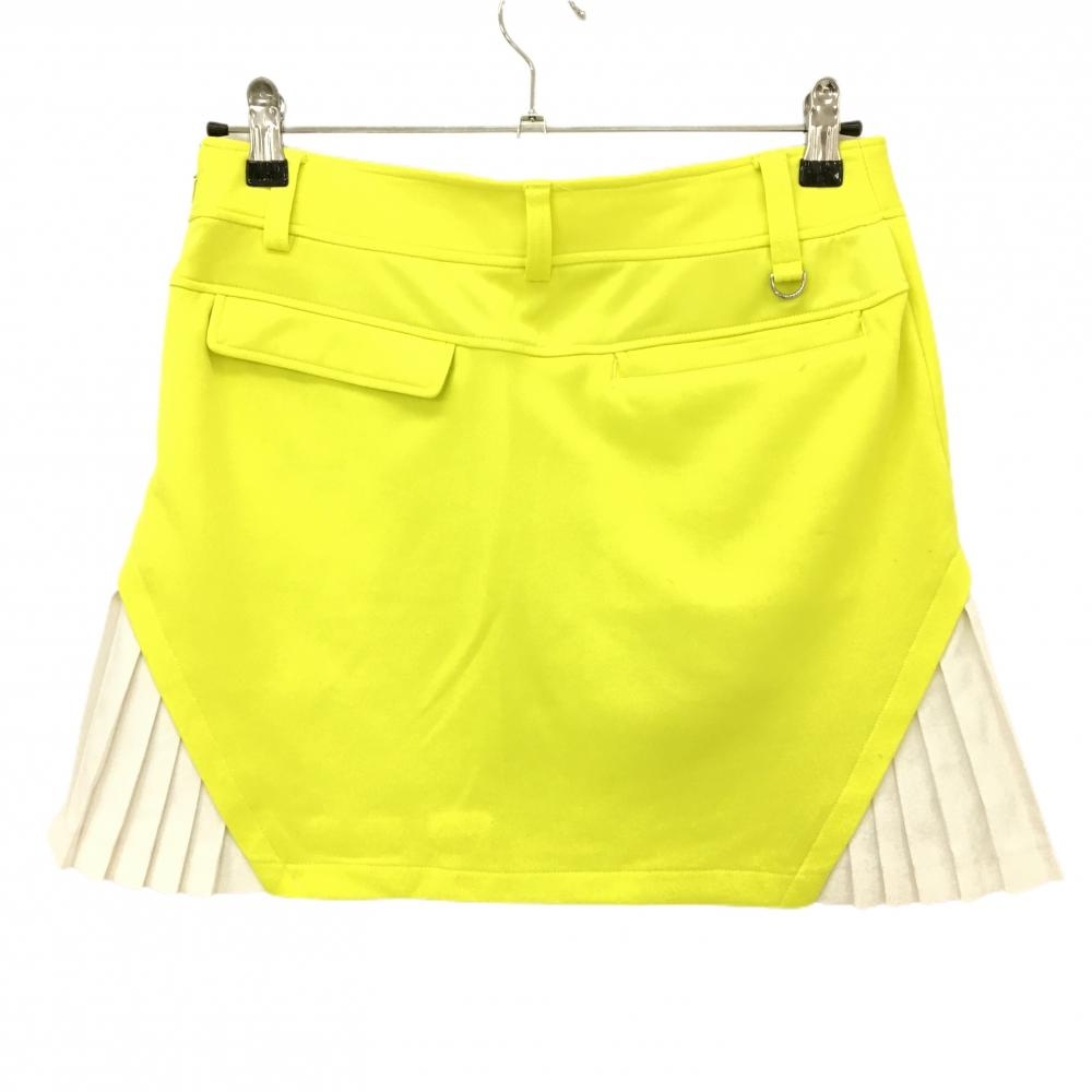 キャロウェイ スカート イエローグリーン×白 一部プリーツ ロゴプリント レディース L ゴルフウェア Callaway