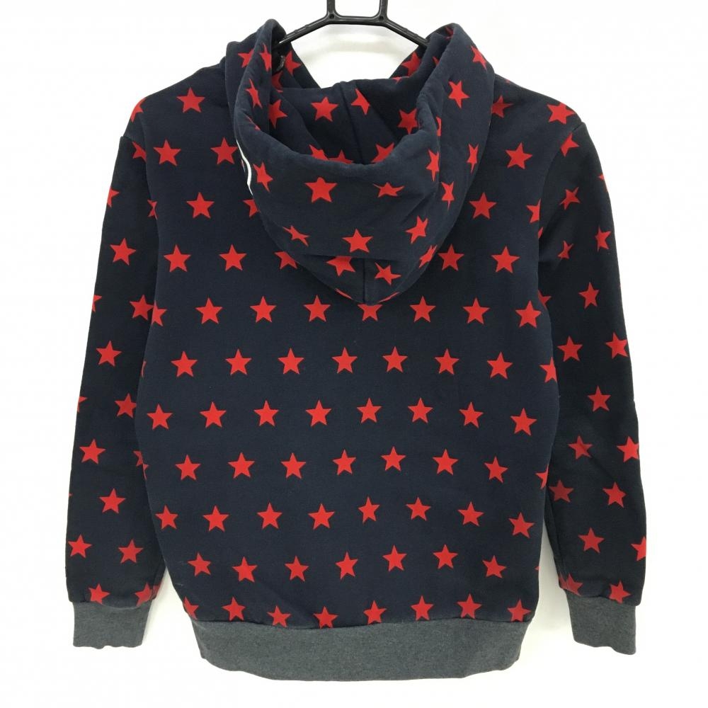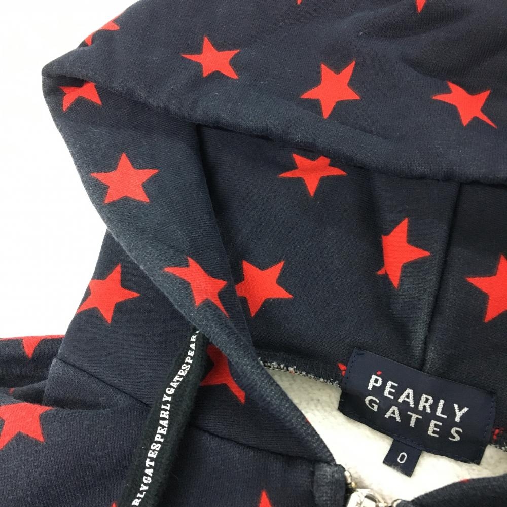 パーリーゲイツ ジップパーカー ネイビー×レッド 星柄 ブルゾン 裏微起毛 レディース 0(S) ゴルフウェア PEARLY GATES