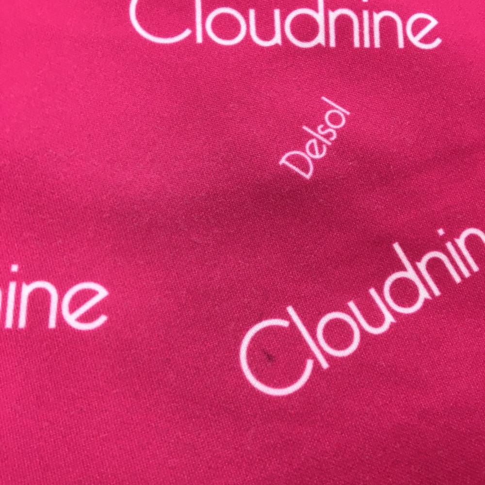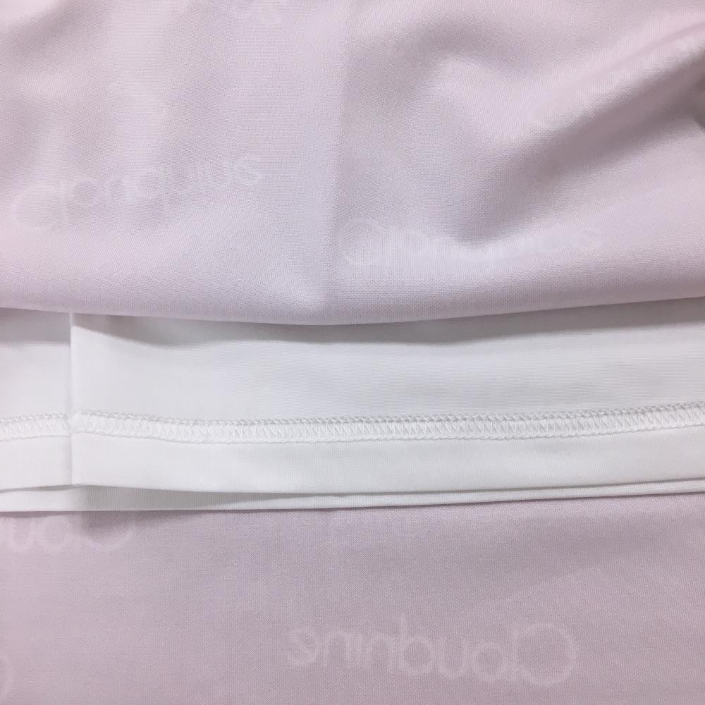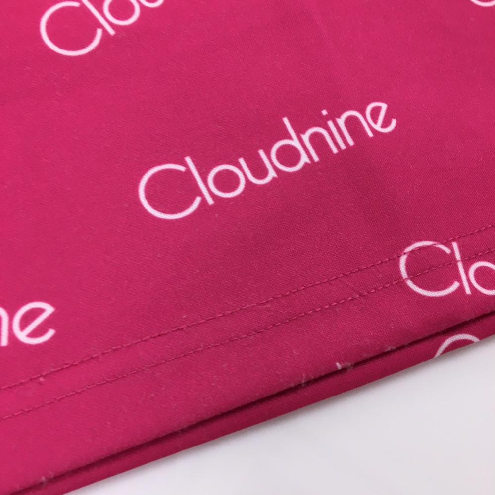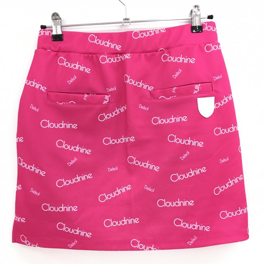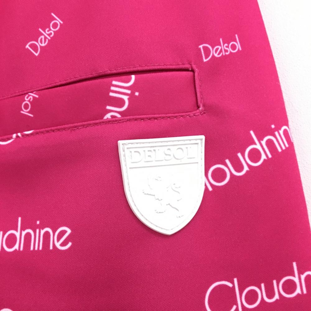 【美品】デルソル スカート ピンク×白 英字総柄 ストレッチ 裏地あり レディース L ゴルフウェア DELSOL