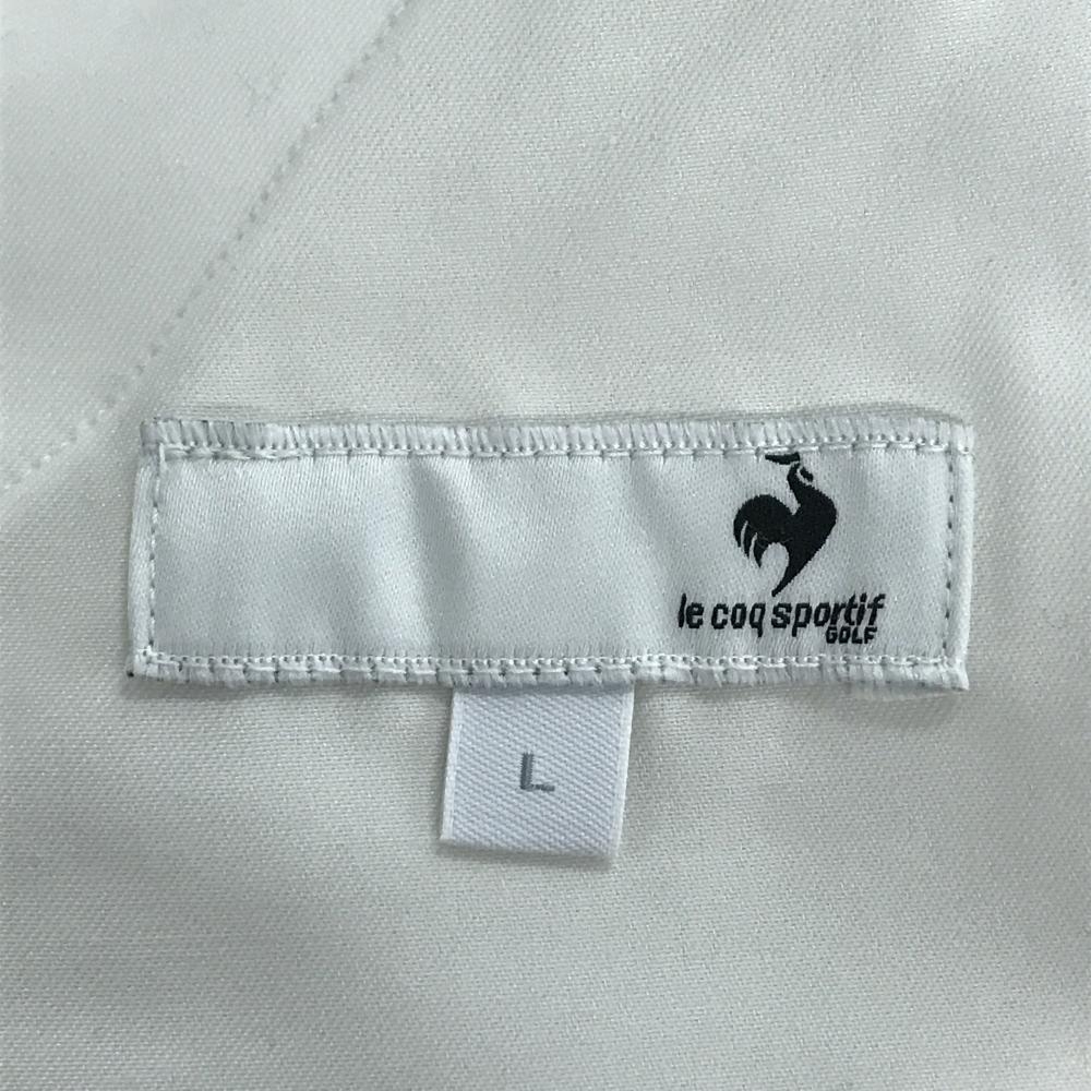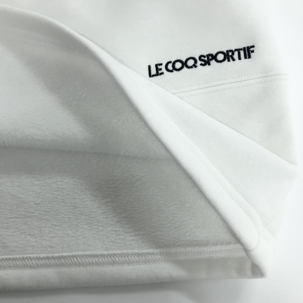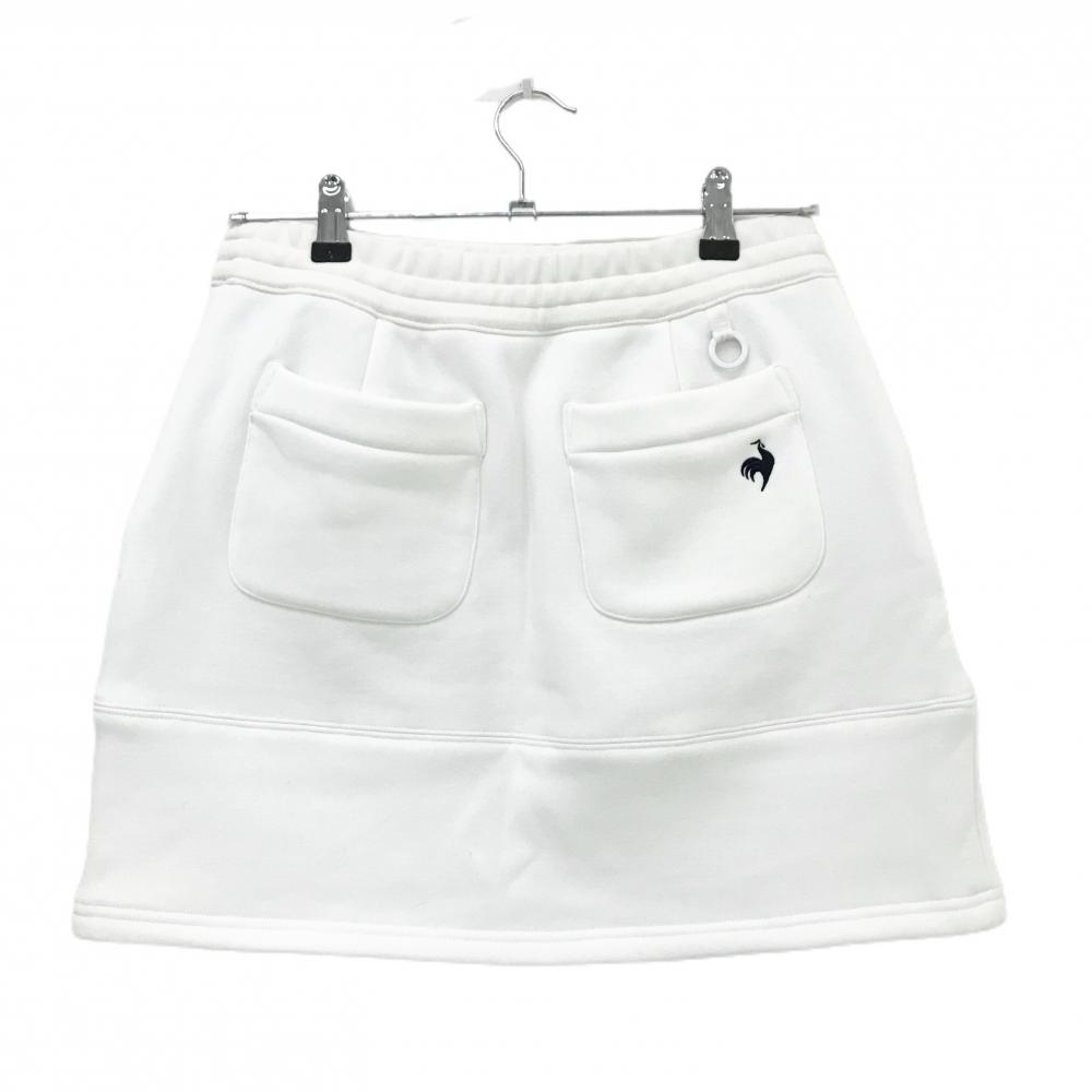 【美品】ルコックゴルフ スカート 白×ネイビー ウエストゴム 裏起毛 ロゴ刺しゅう レディース L ゴルフウェア le coq sportif