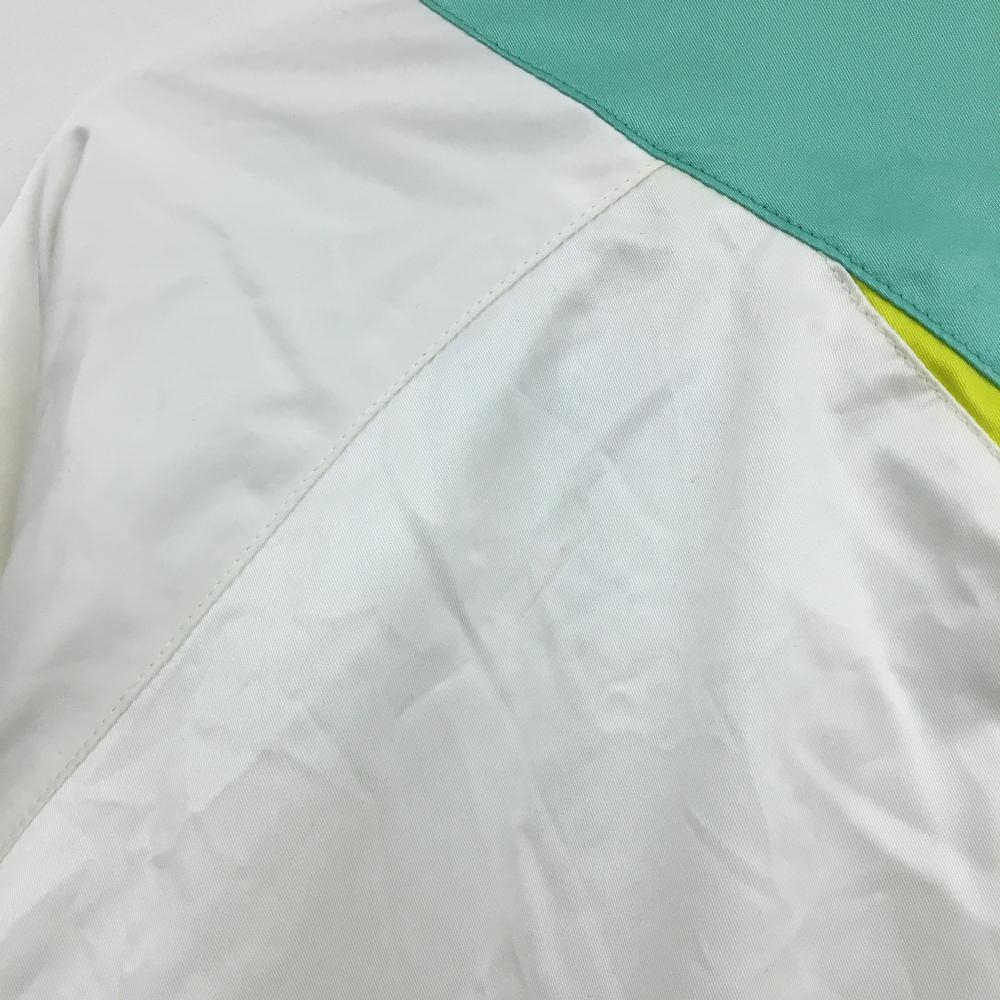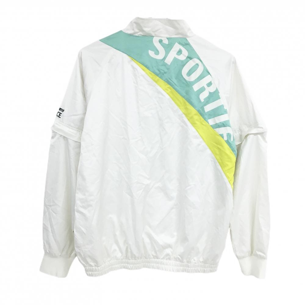 【美品】ルコックゴルフ 2WAYブルゾン 白×ミントグリーン ロゴ刺しゅう 袖着脱可 裏地メッシュ レディース L ゴルフウェア le coq sportif