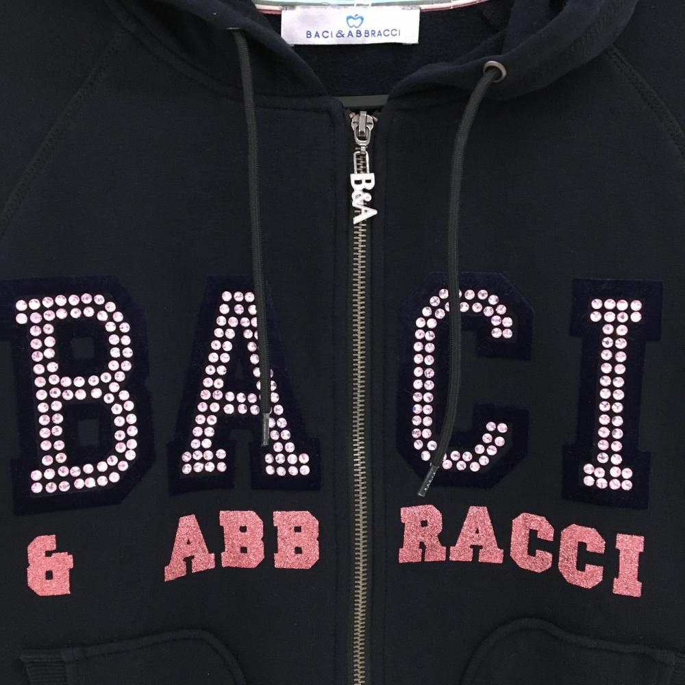 【美品】バッチアンドアブラッチ ジップパーカー 黒×ピンク ラインストーン 裏起毛 ブルゾン レディース M ゴルフウェア BACI&ABBRACCI