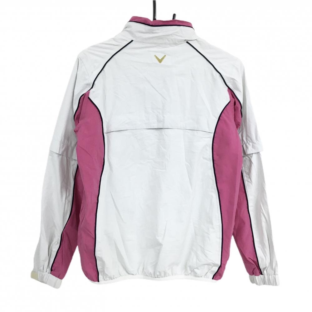 キャロウェイ 2WAYナイロンジャケット 白×ピンク ロゴゴールド 裏地メッシュ 袖着脱可 レディース L ゴルフウェア Callaway