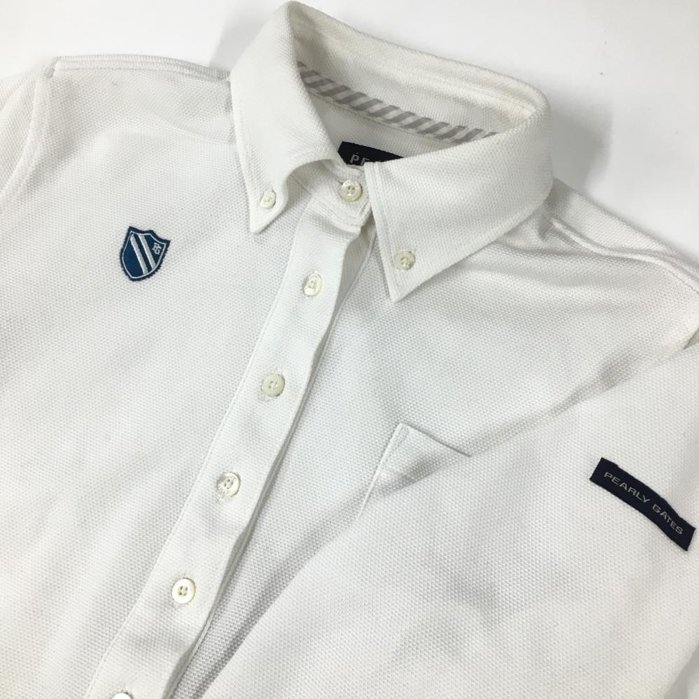 パーリーゲイツ 長袖ポロシャツ 白 ボタンダウン 胸ロゴ レディース 1(M) ゴルフウェア PEARLY GATES