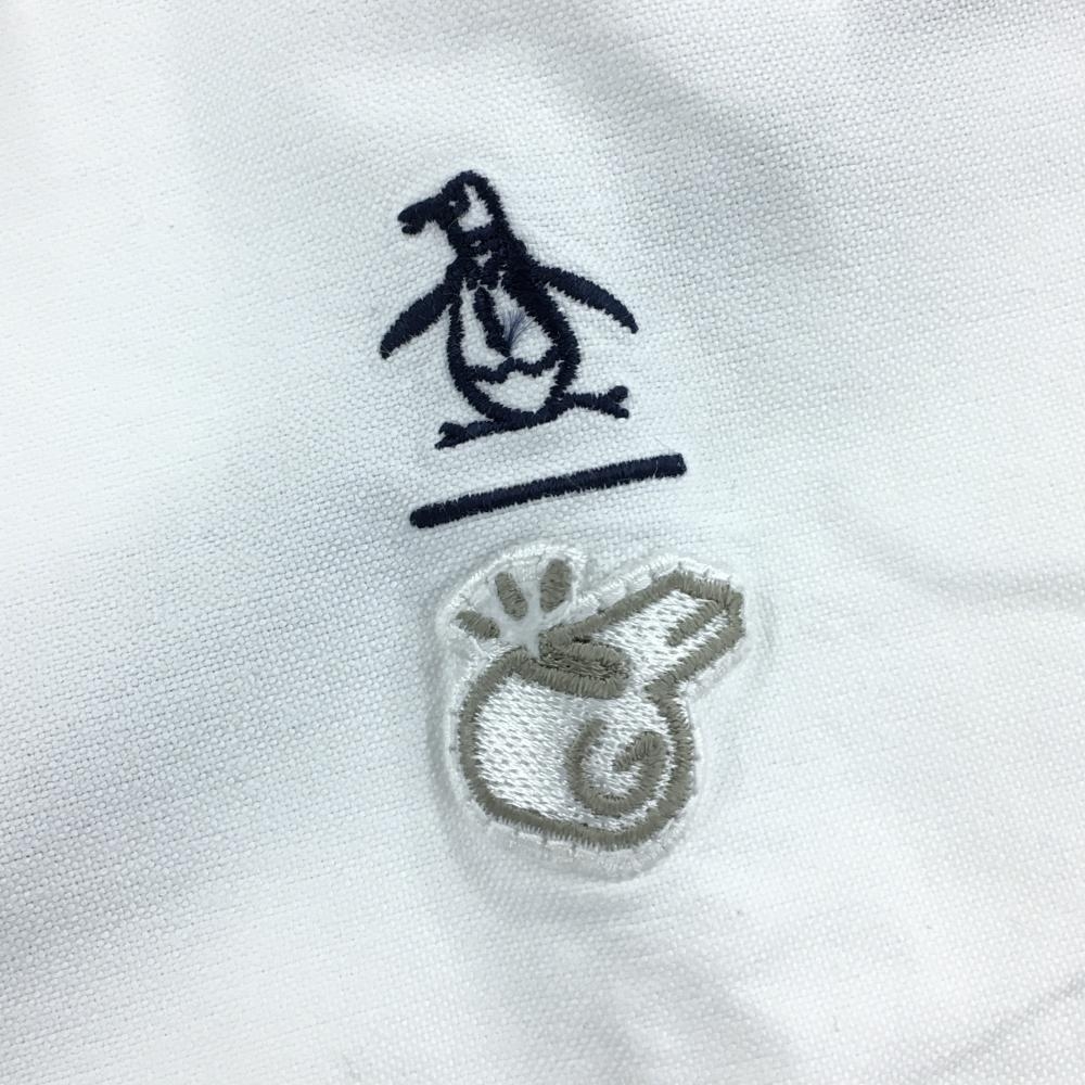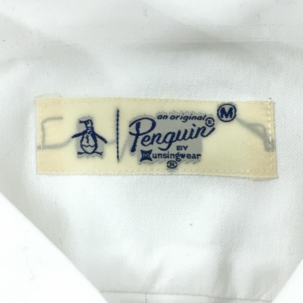 【美品】ペンギンバイマンシングウェア 長袖シャツ 白 胸ロゴ ボタンダウン 綿100% メンズ M ゴルフウェア Munsingwear