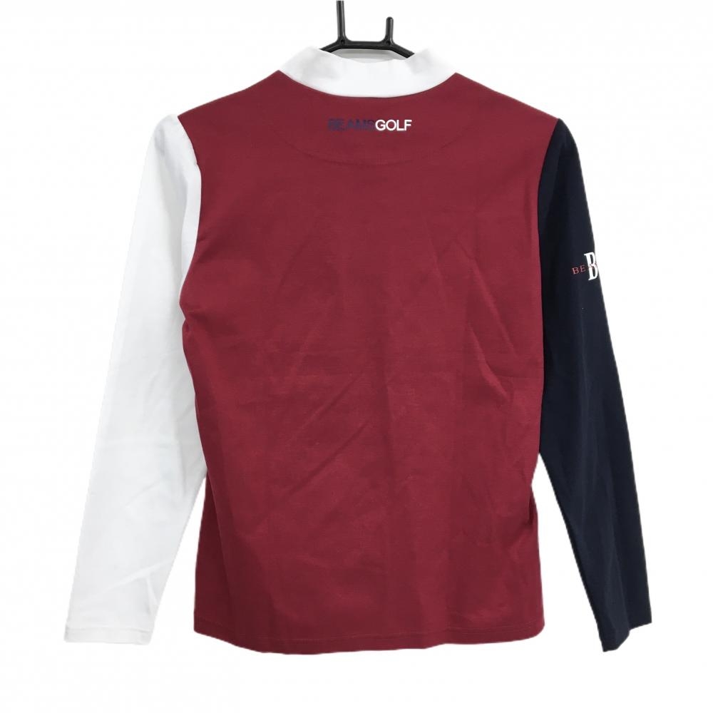 【新品】ビームスゴルフ 長袖ハイネックシャツ 白×ネイビー×ボルドー ストレッチ レディース M ゴルフウェア 2024年モデル BEAMS GOLF