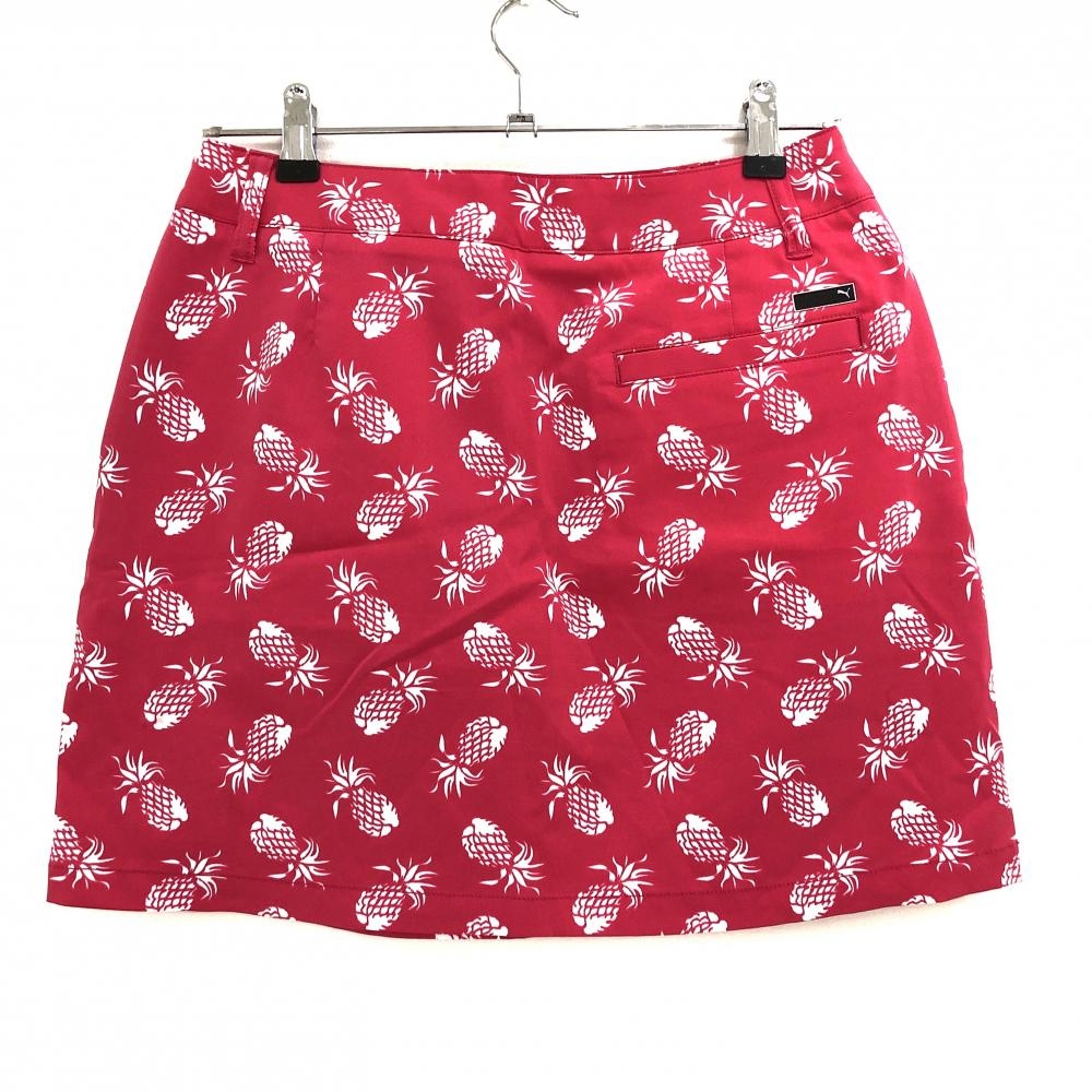【超美品】プーマ スカート ピンク×白 パイナップル総柄 ロゴ刺しゅう レディース O ゴルフウェア PUMA