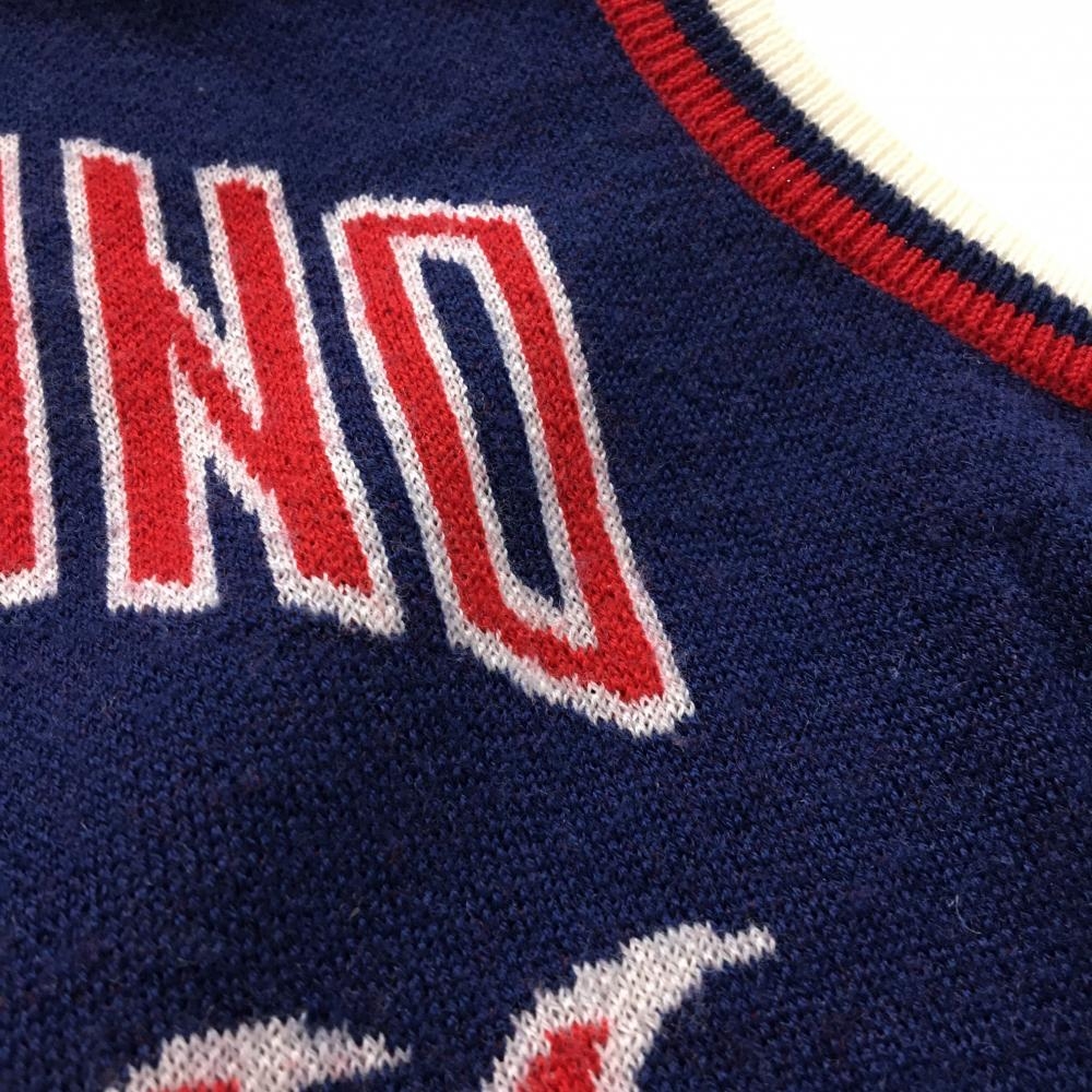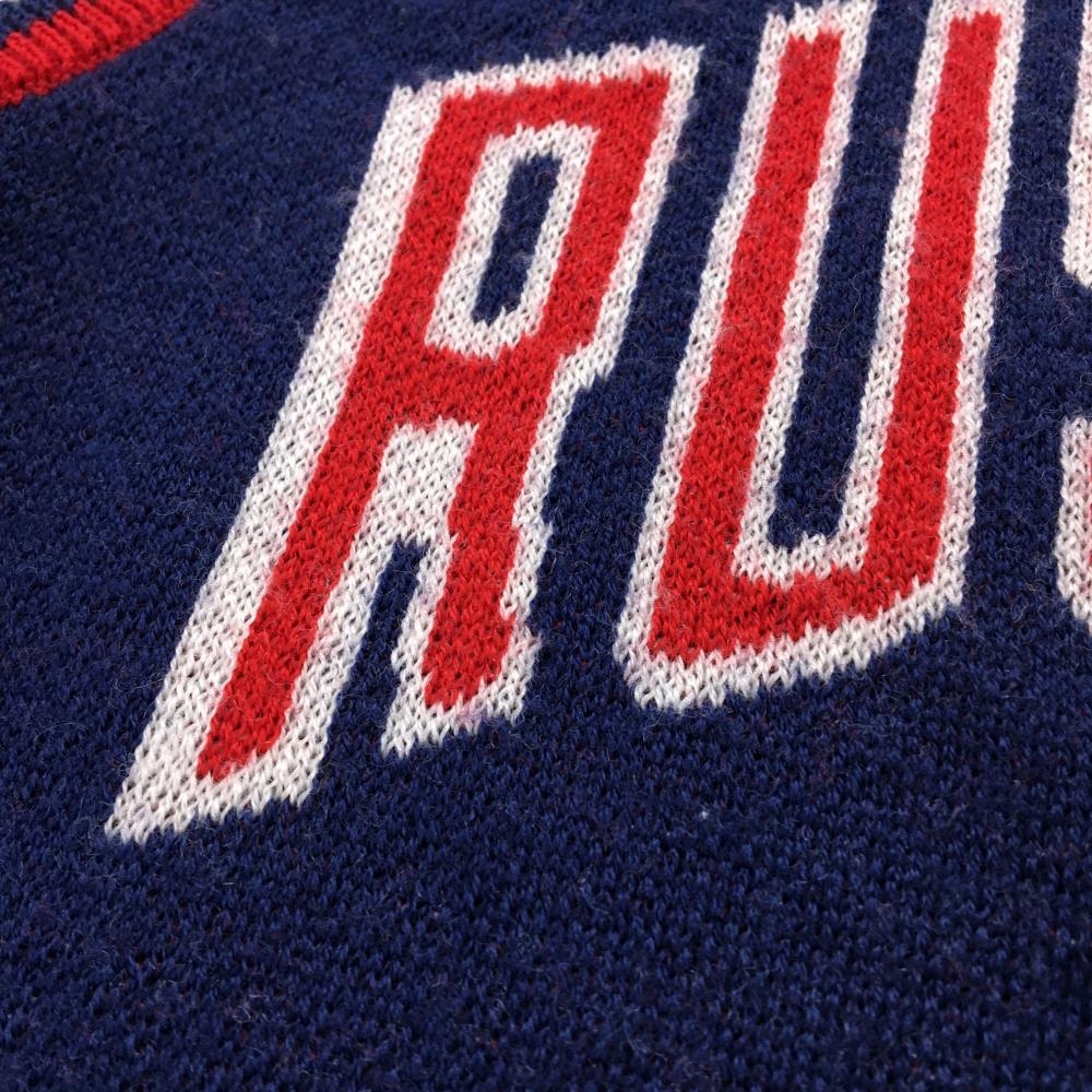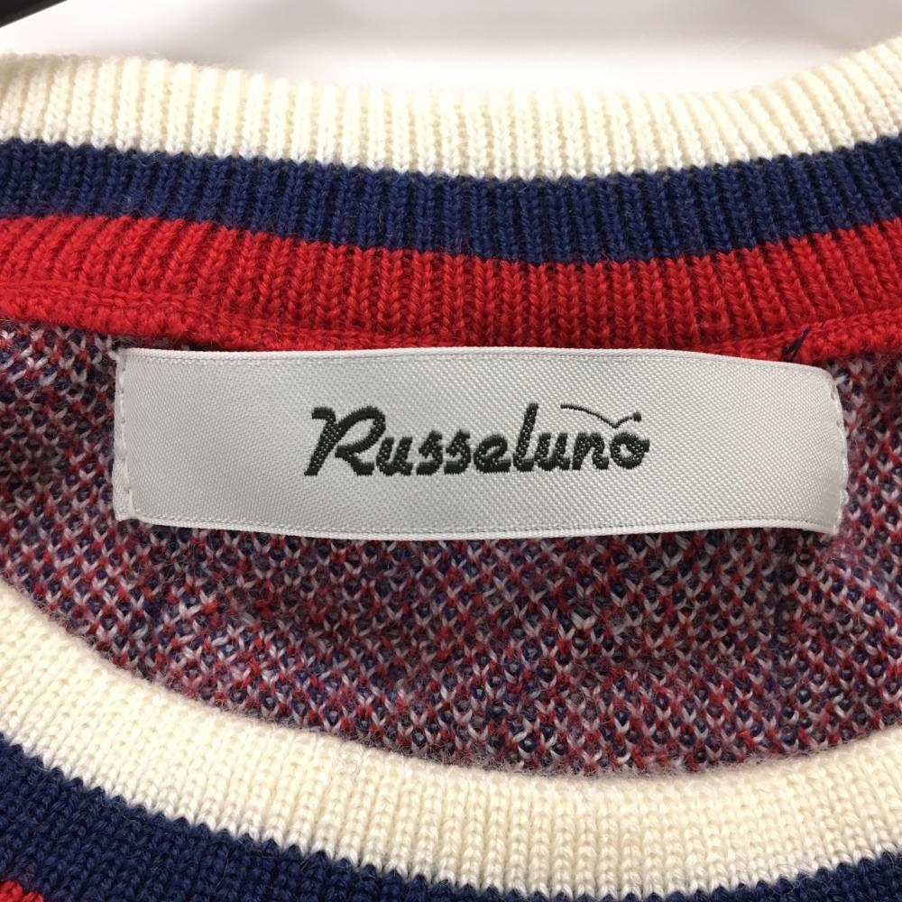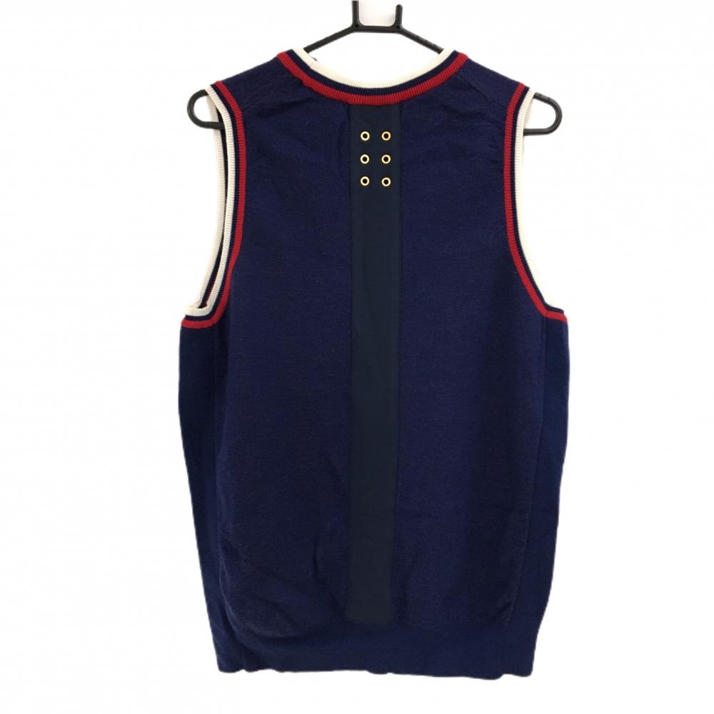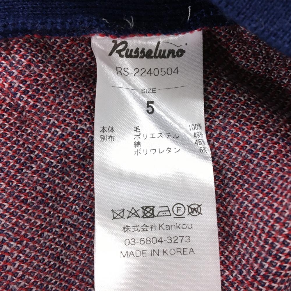 【美品】ラッセルノ ニットベスト ネイビー×レッド×白 ウール100% メンズ 5(L) ゴルフウェア RUSSELUNO