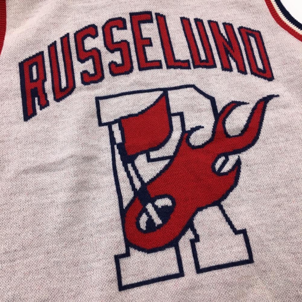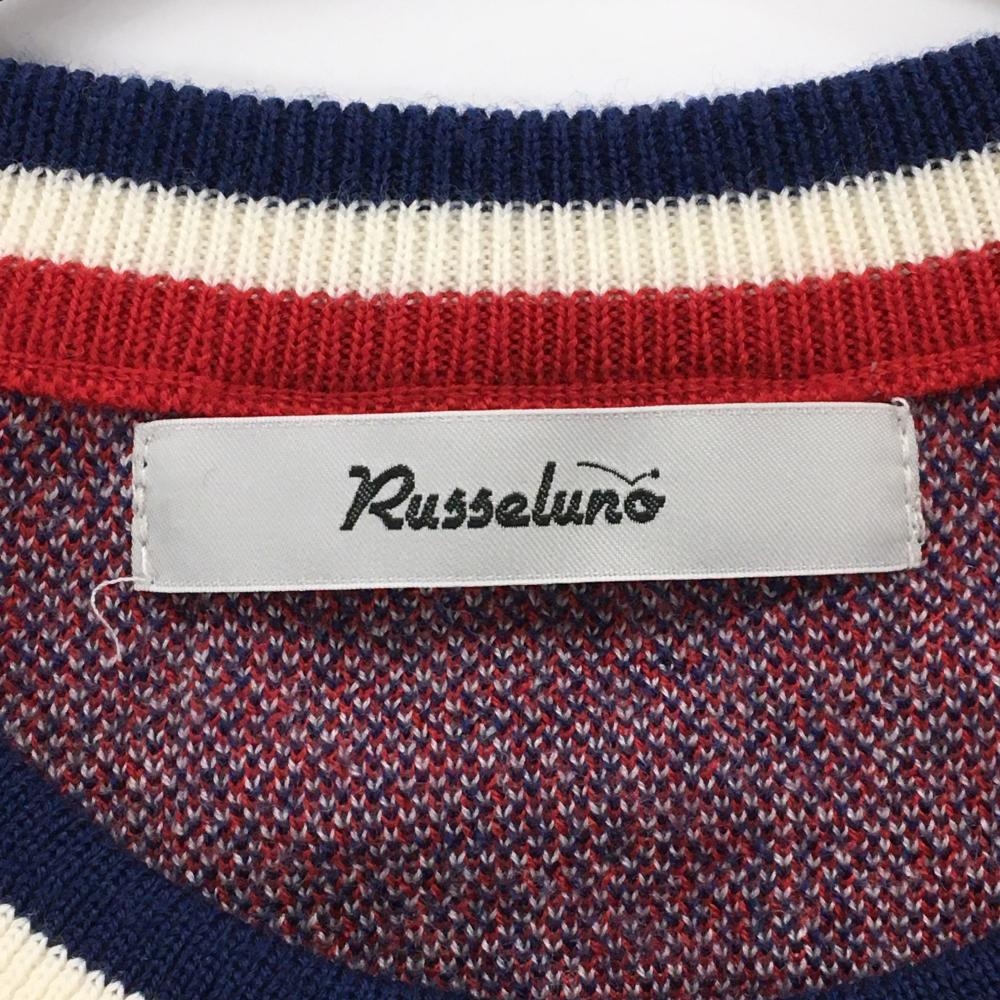 【超美品】ラッセルノ ニットベスト 白×レッド×ネイビー ウール100% トリコロール メンズ 5(L) ゴルフウェア RUSSELUNO