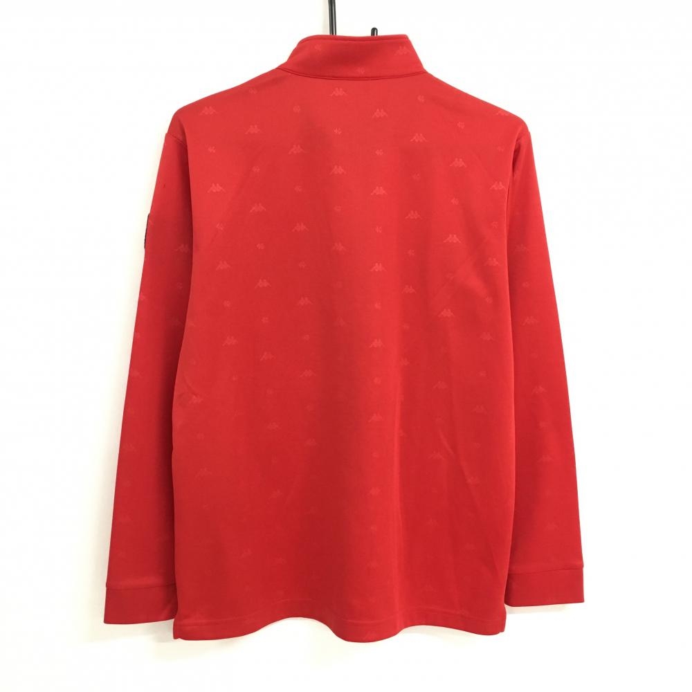 【美品】カッパ 長袖ハイネックシャツ レッド ロゴシルバー ハーフジップ ロゴ地模様 メンズ L ゴルフウェア Kappa