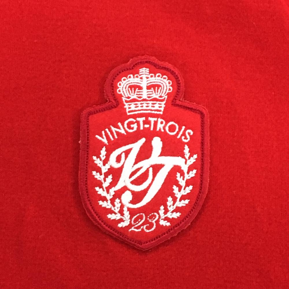 【美品】23区ゴルフ 長袖ハイネックシャツ レッド 表微起毛 ワッペン メンズ L ゴルフウェア 23区