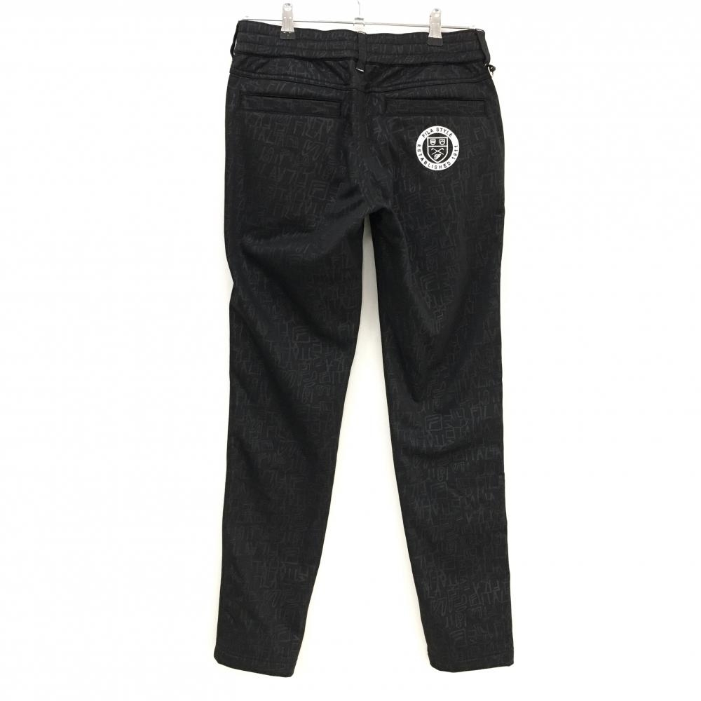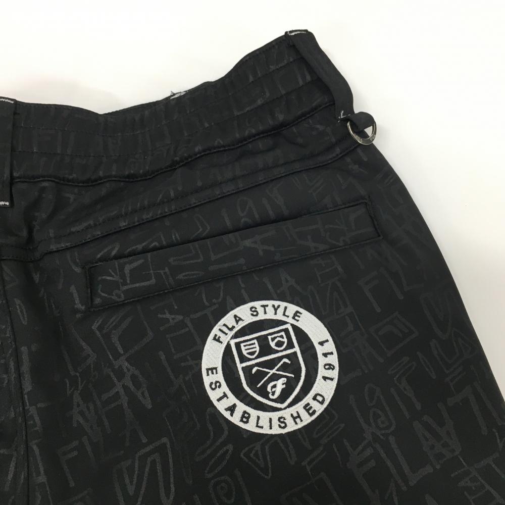 【超美品】フィラゴルフ パンツ 黒 ロゴ総柄地模様 裏起毛 ウエスト一部ゴム レディース L ゴルフウェア FILA GOLF