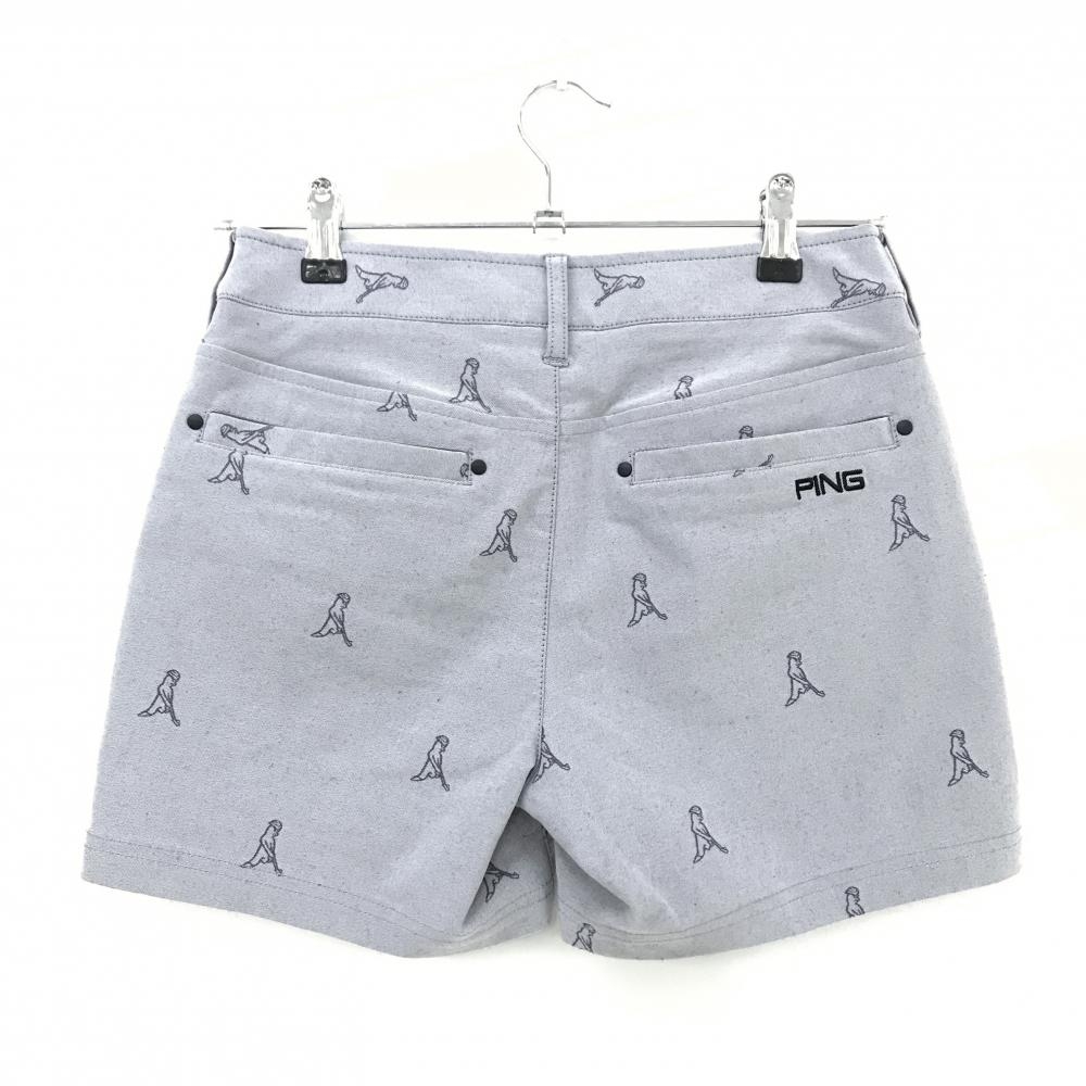 【超美品】ピン ショートパンツ 杢グレー ロゴ総柄 レディース S ゴルフウェア PING