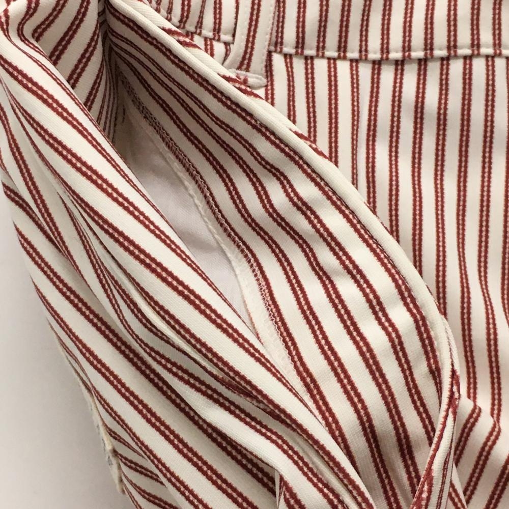 【美品】ゾーイ パンツ 白×レッド ストライプ 半端丈 レディース 38(M) ゴルフウェア ZOY