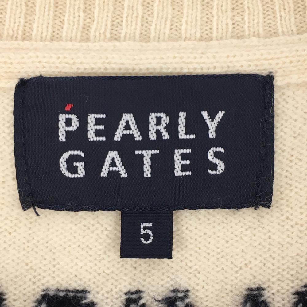 【美品】パーリーゲイツ セーター アイボリー カシミヤ100% ロゴ ニット メンズ 5(L) ゴルフウェア PEARLY GATES