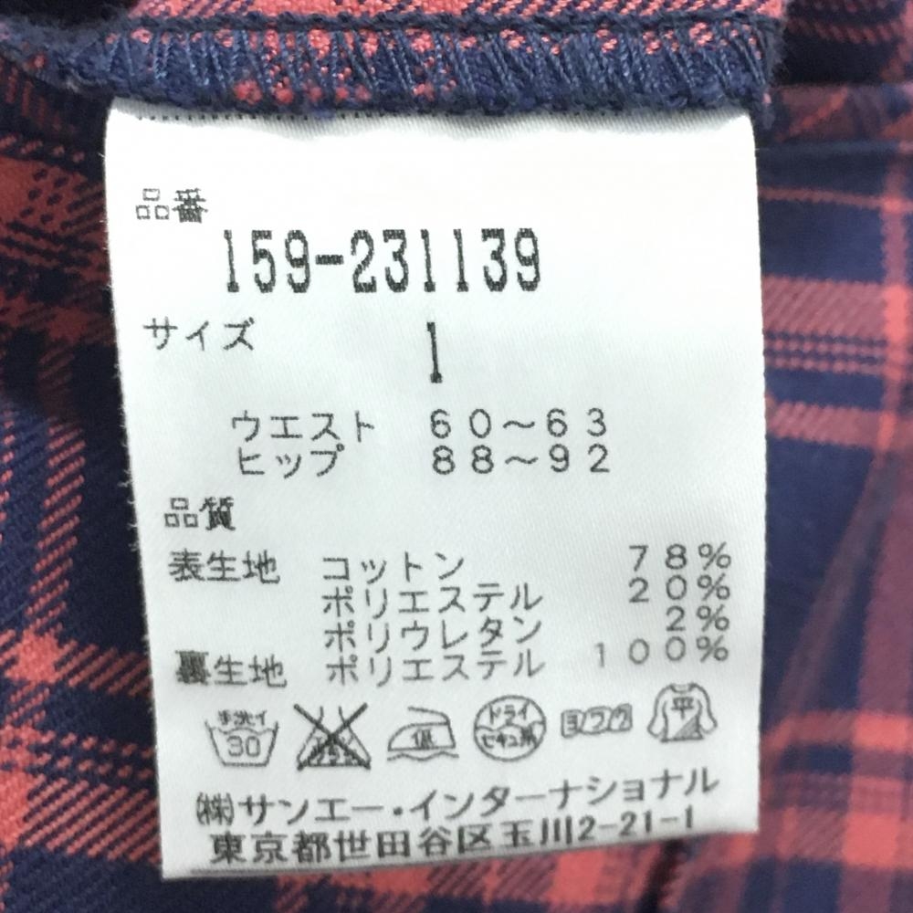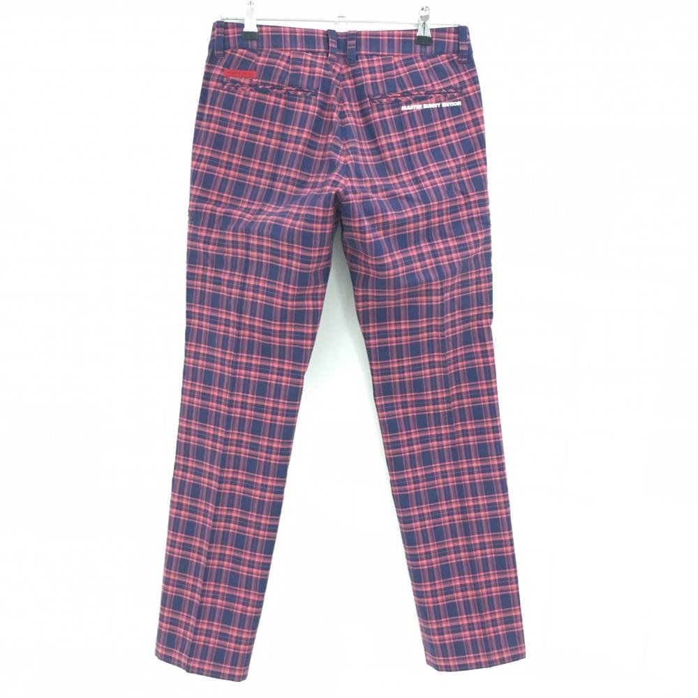 【美品】マスターバニー パンツ ネイビー×ピンク チェック 蓄熱裏地 レディース 1(M) ゴルフウェア MASTER BUNNY EDITION