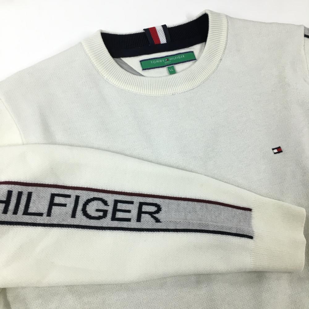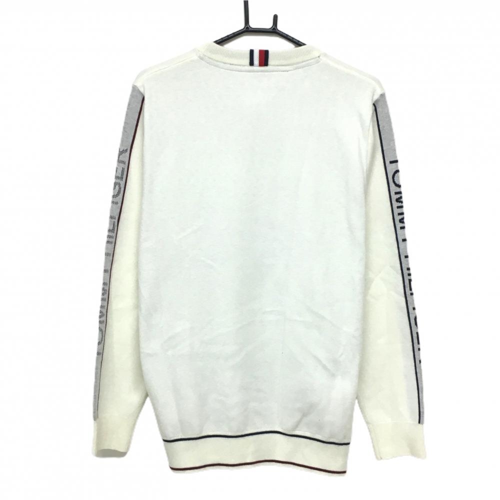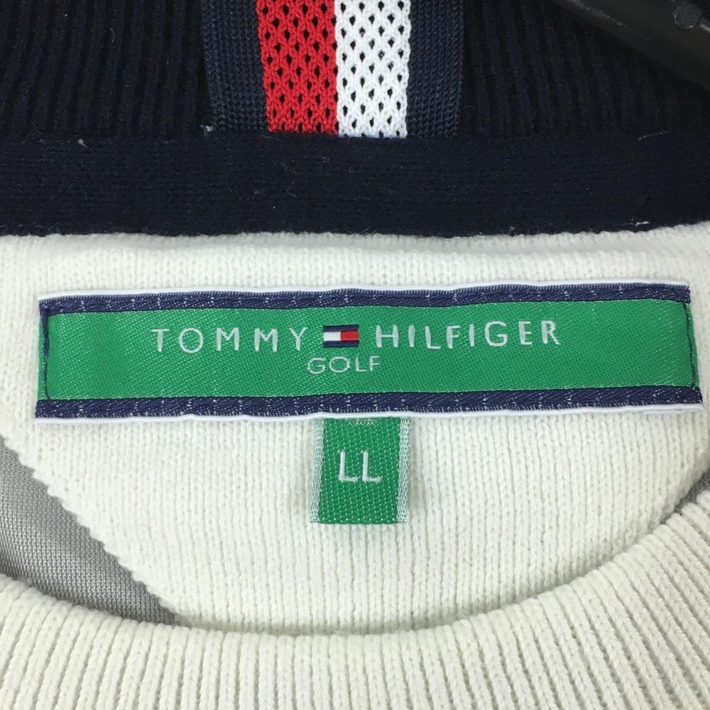 【超美品】トミーヒルフィガーゴルフ セーター 白×ライトグレー 肩ロゴライン ウール混 メンズ LL ゴルフウェア Tommy Hilfiger Golf