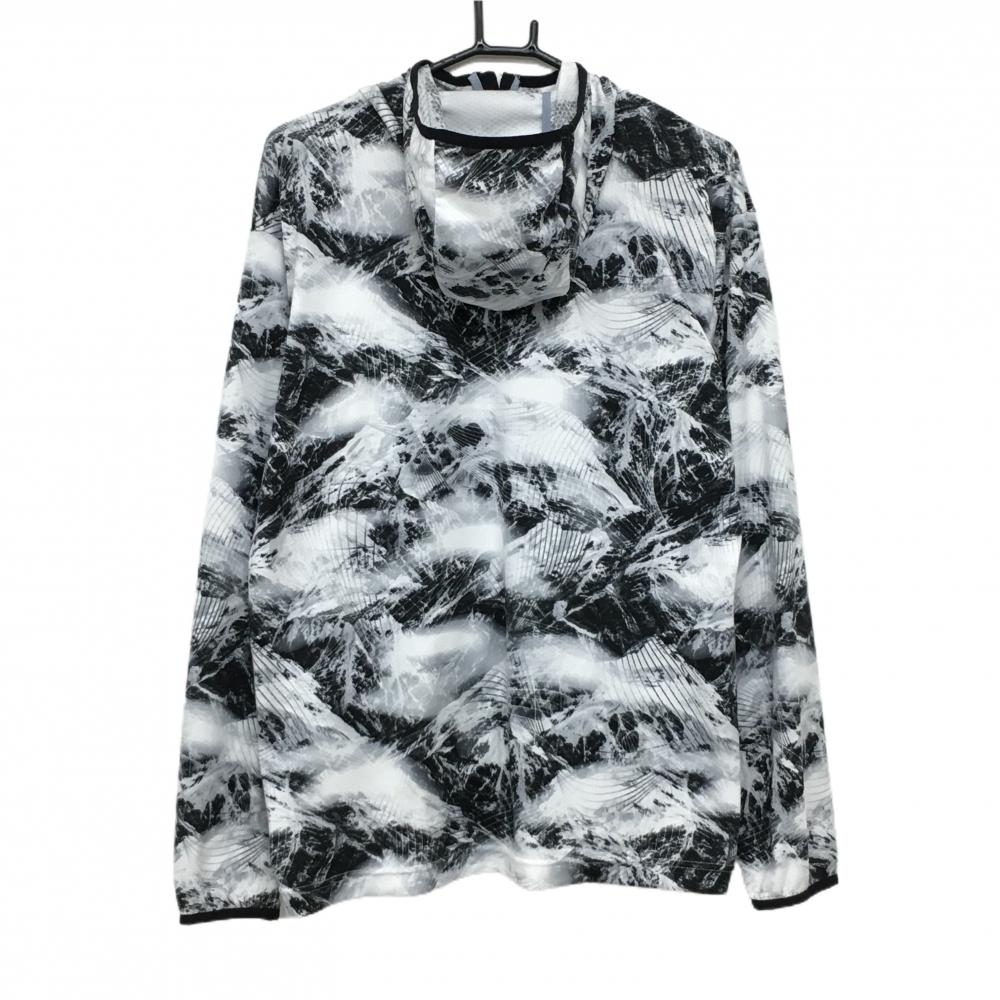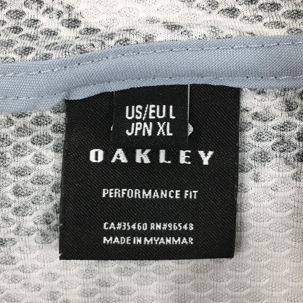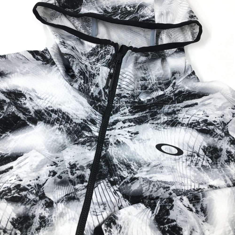 【美品】オークリー ジップパーカー 白×黒 総柄 薄手 胸元ロゴ メンズ XL ゴルフウェア Oakley