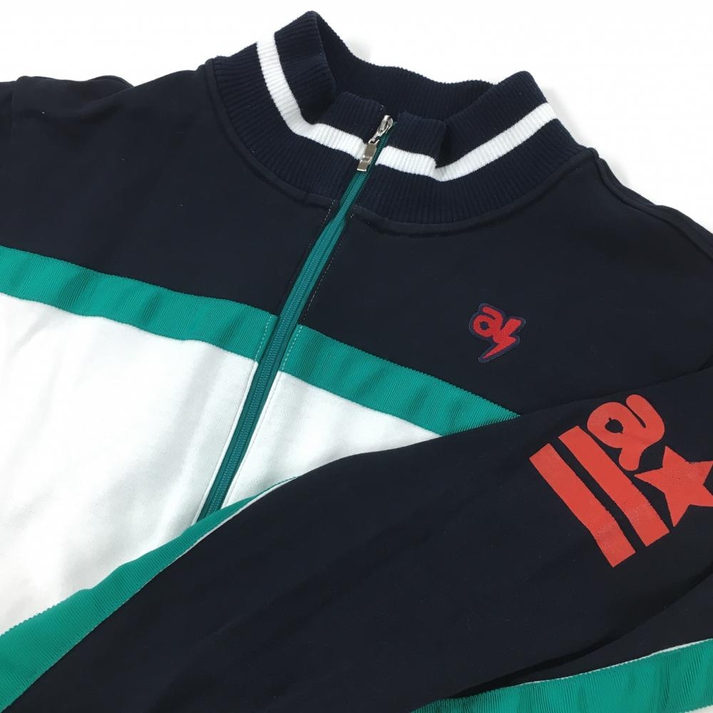 アルチビオ ジャケットブルゾン 白×ネイビー×グリーン 胸袖ライン ワッペン メンズ 46(M) ゴルフウェア archivio