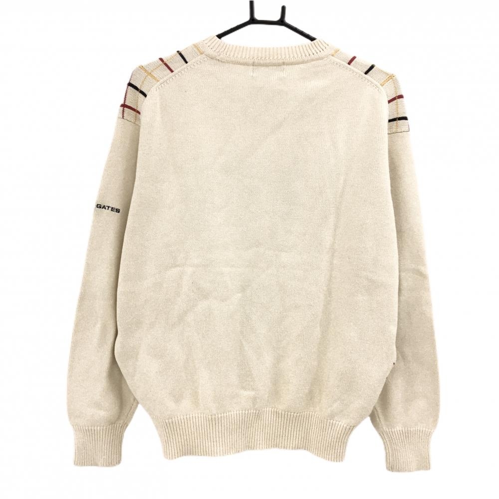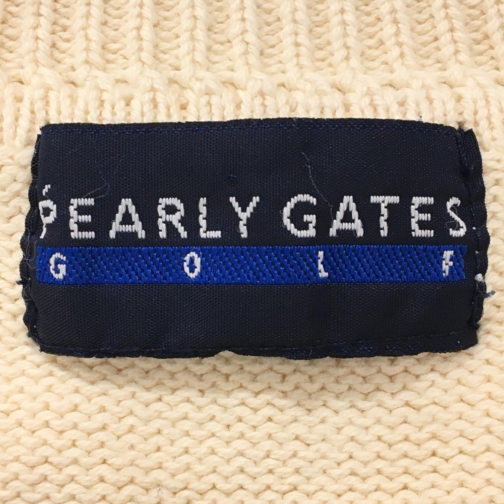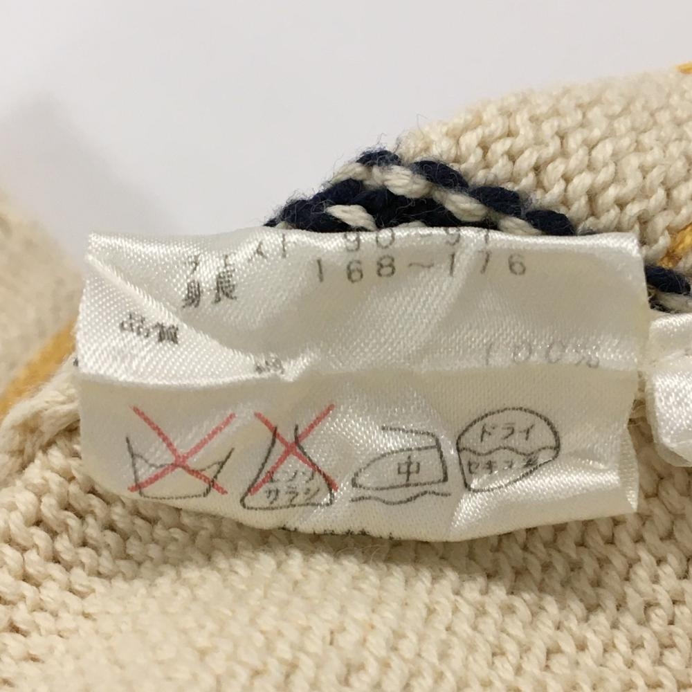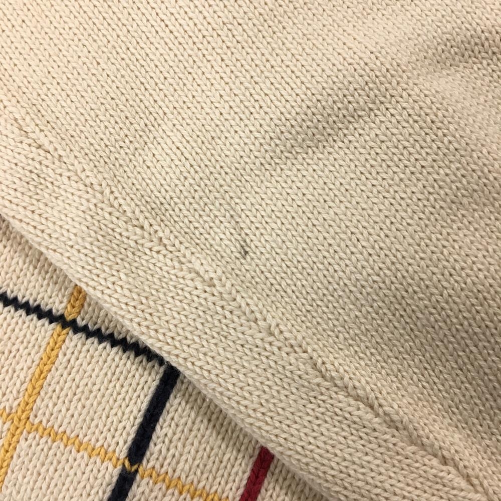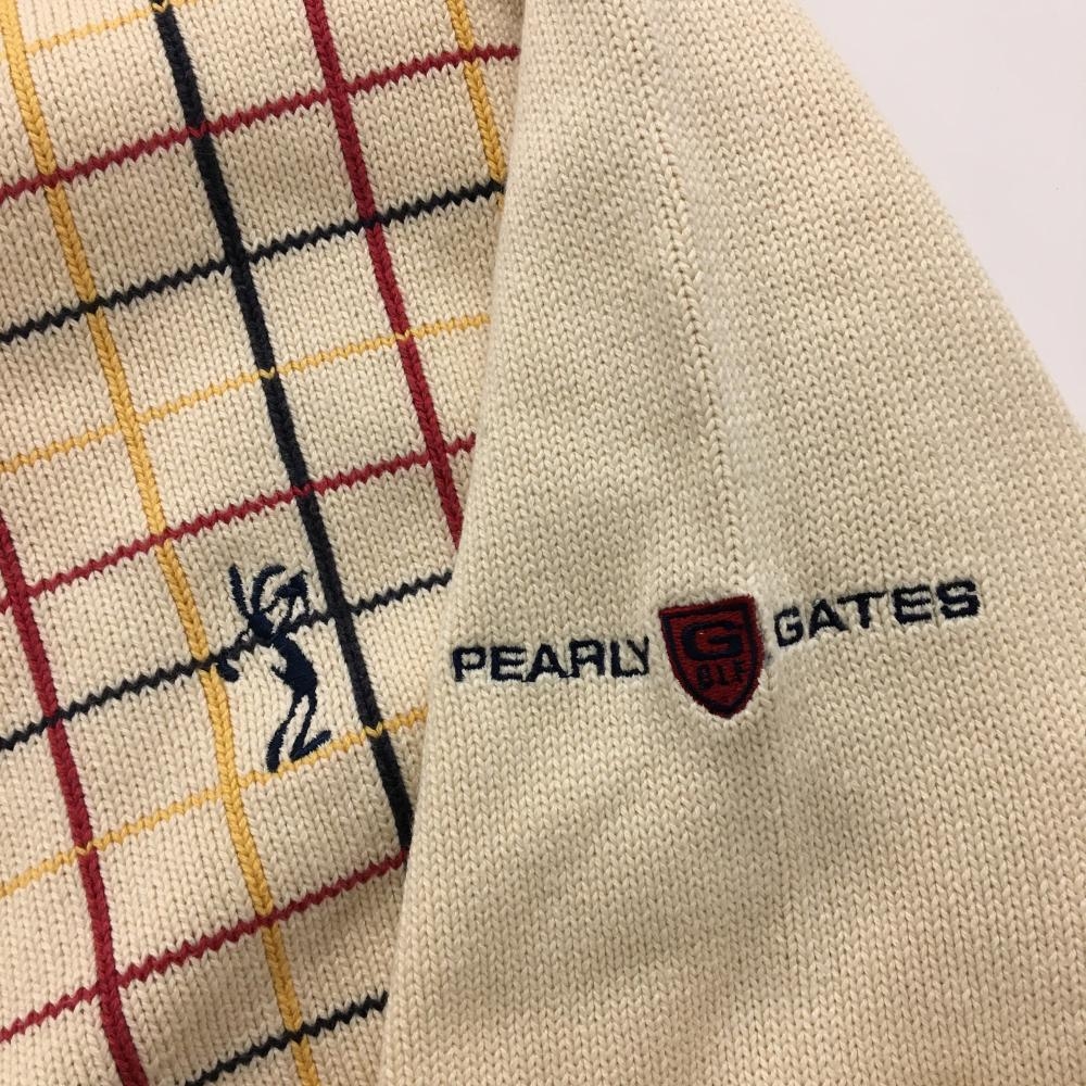 【美品】パーリーゲイツ セーター アイボリー×ネイビー 前身頃格子チェック コットン100% レディース 2(L) ゴルフウェア PEARLY GATES