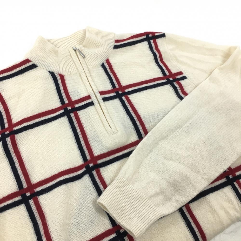 ワンサイダー ハイネックセーター アイボリー ハーフジップ 前チェック カシミヤ100% ニット レディース M ゴルフウェア ONESIDER