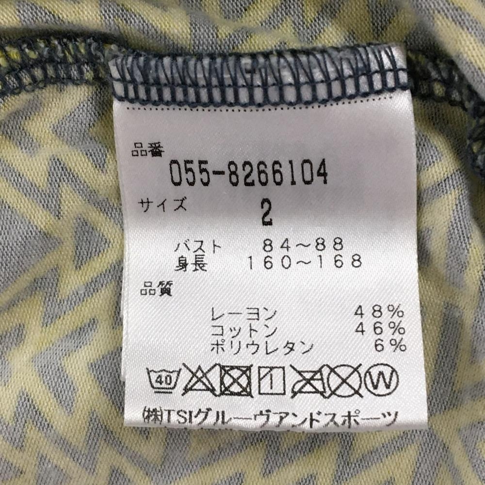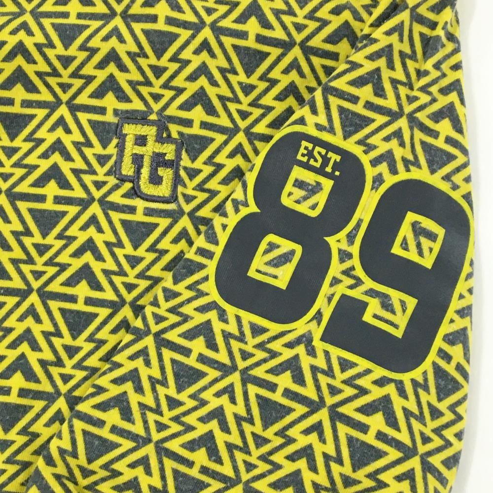 パーリーゲイツ 長袖ハイネックシャツ イエロー×グレー 総柄 レディース 2(L) ゴルフウェア PEARLY GATES