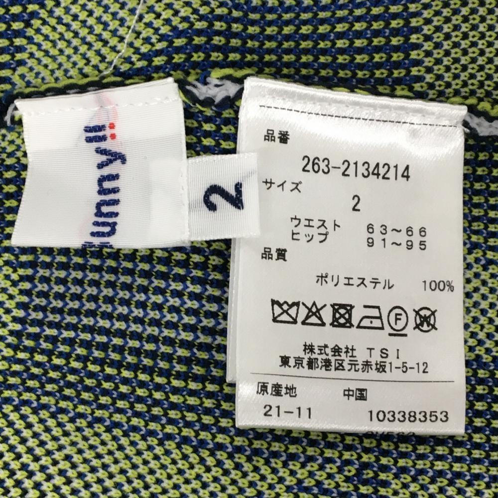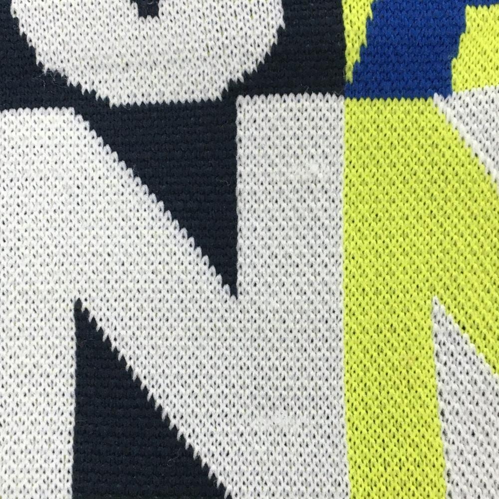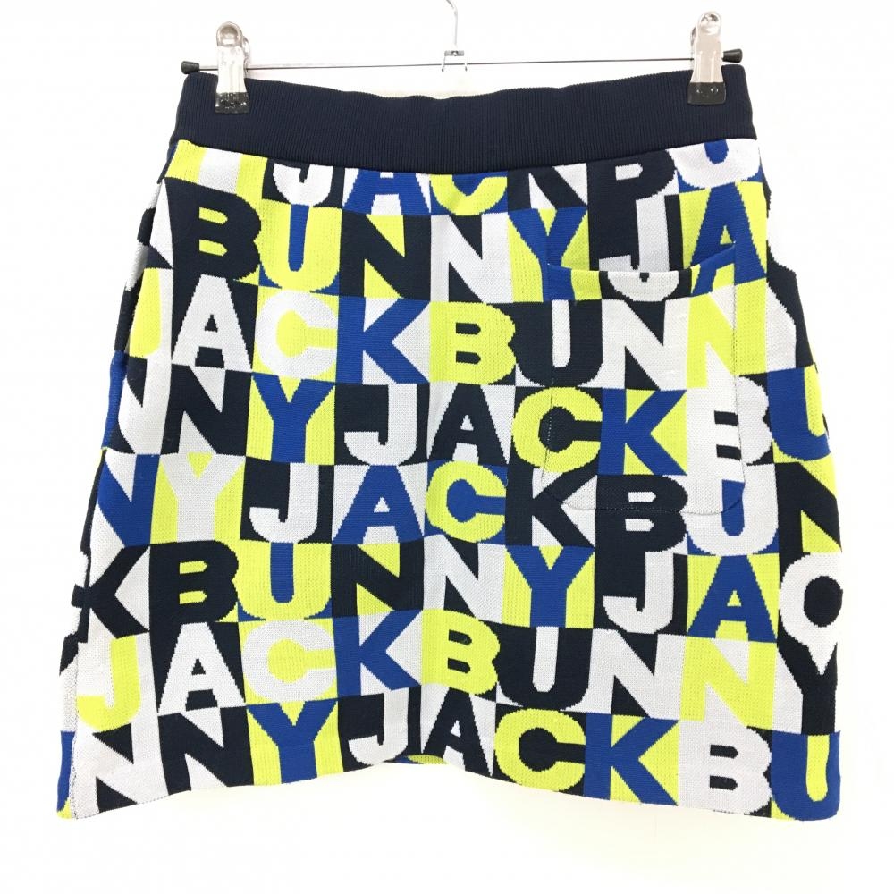 ジャックバニー ニットスカート 白×ネイビー×イエロー系 英字総柄 レディース 2(L) ゴルフウェア Jack Bunny