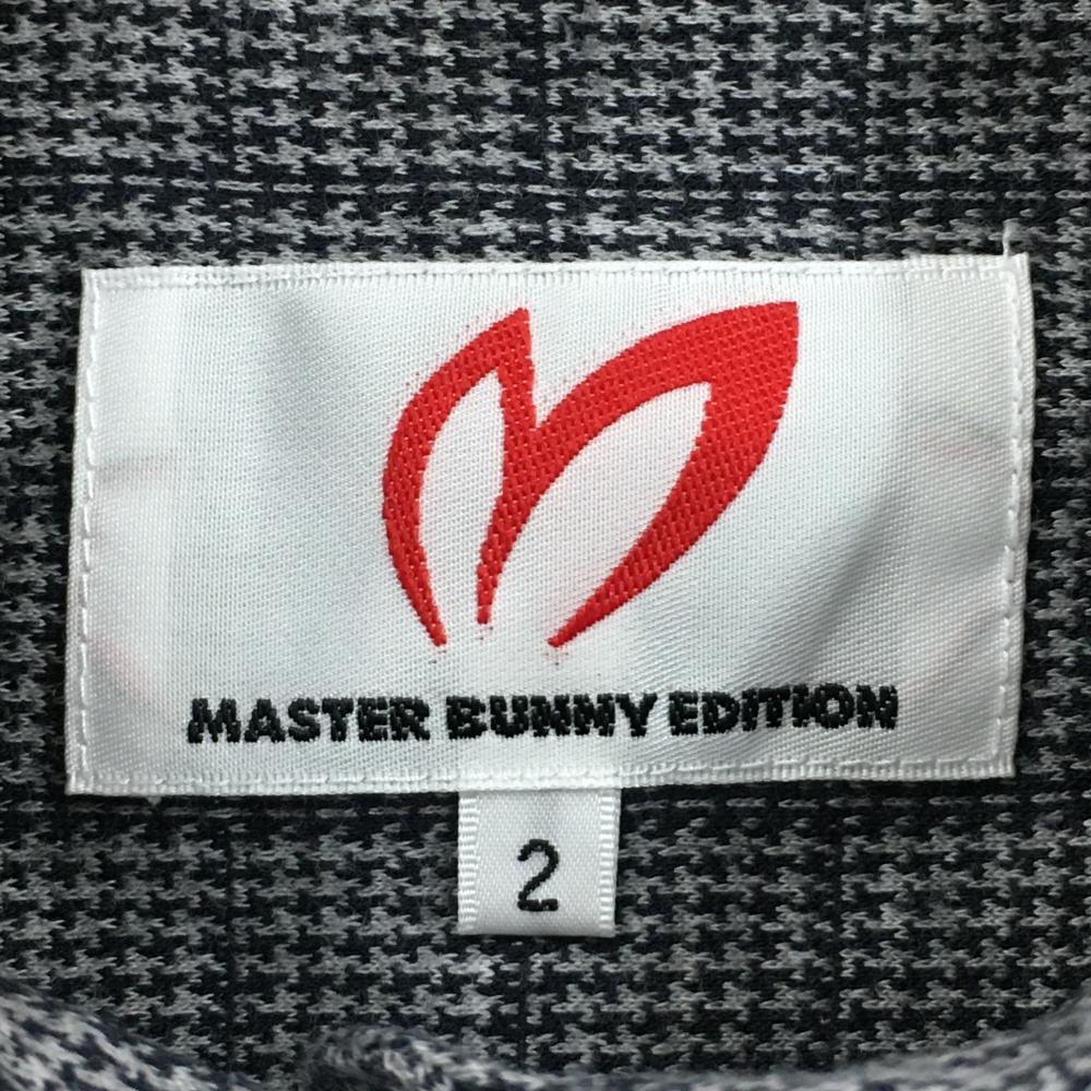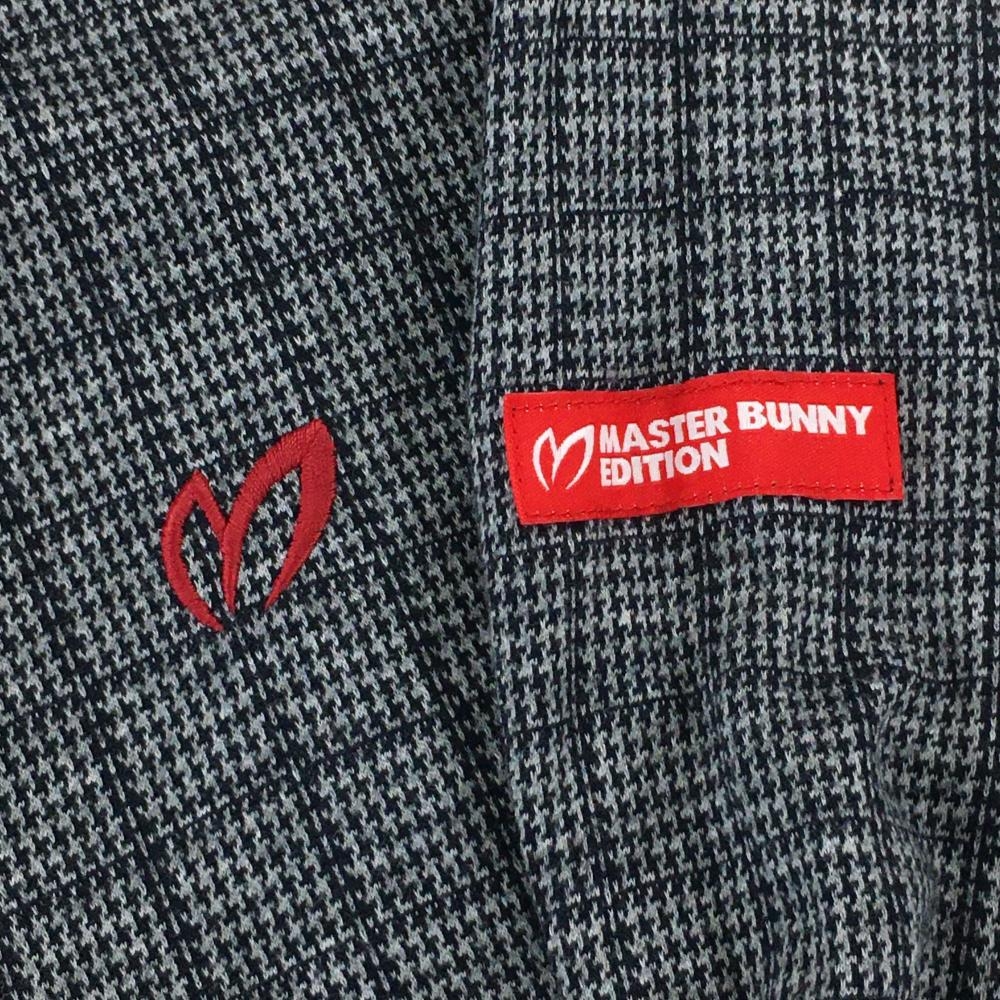 【美品】マスターバニー 長袖シャツ グレー×ダークネイビー チェック ボタンダウン レディース 2(L) ゴルフウェア MASTER BUNNY EDITION