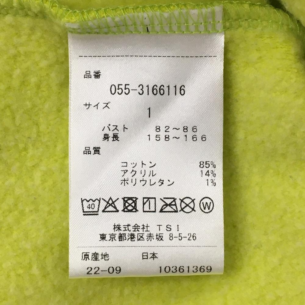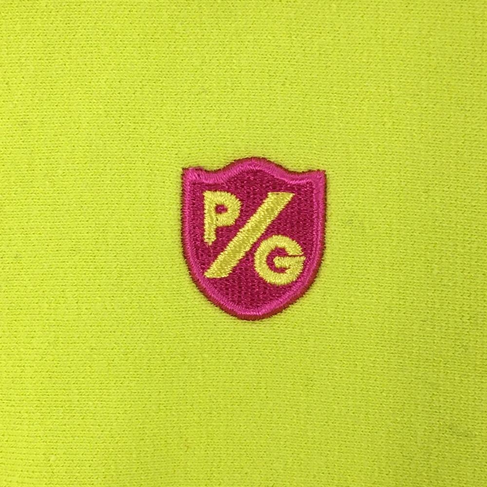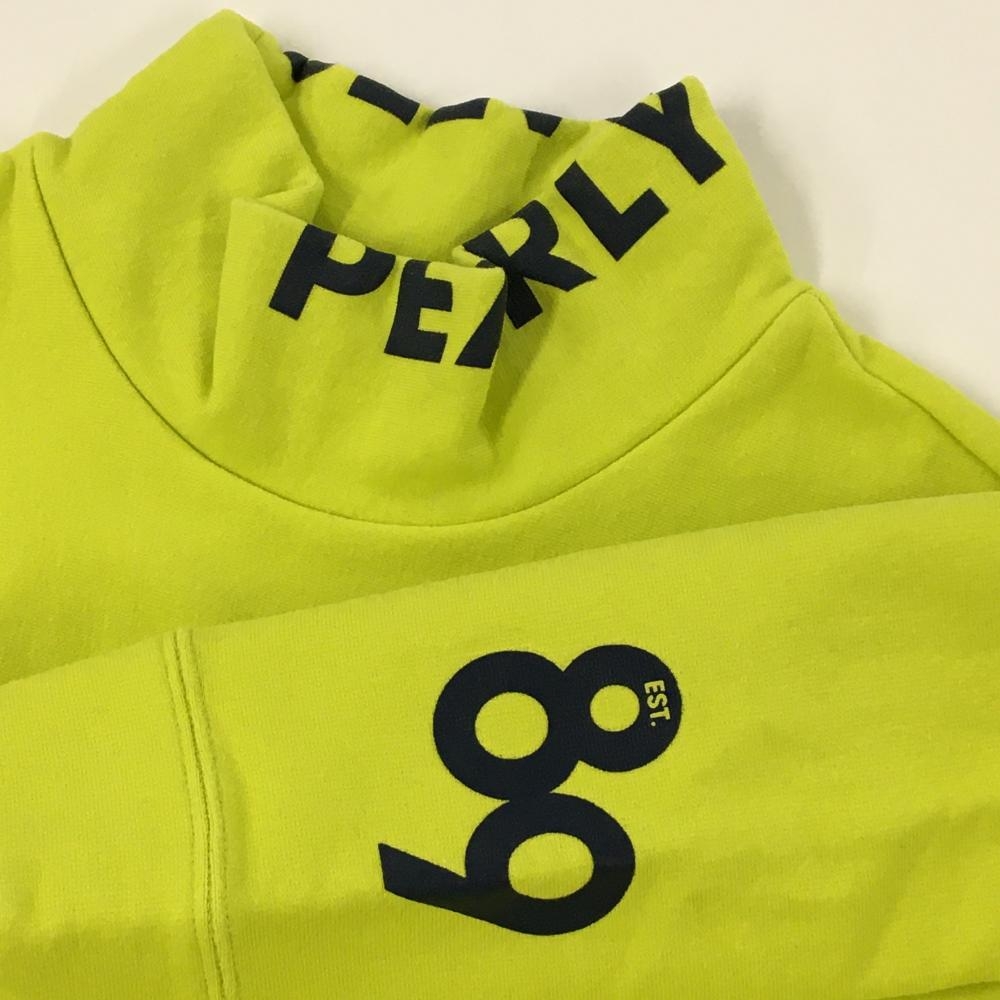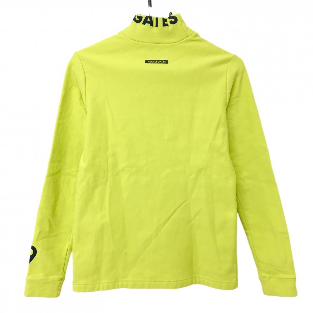 【美品】パーリーゲイツ 長袖ハイネックシャツ イエロー×ネイビー ネックロゴ 裏起毛 レディース 1(M) ゴルフウェア PEARLY GATES