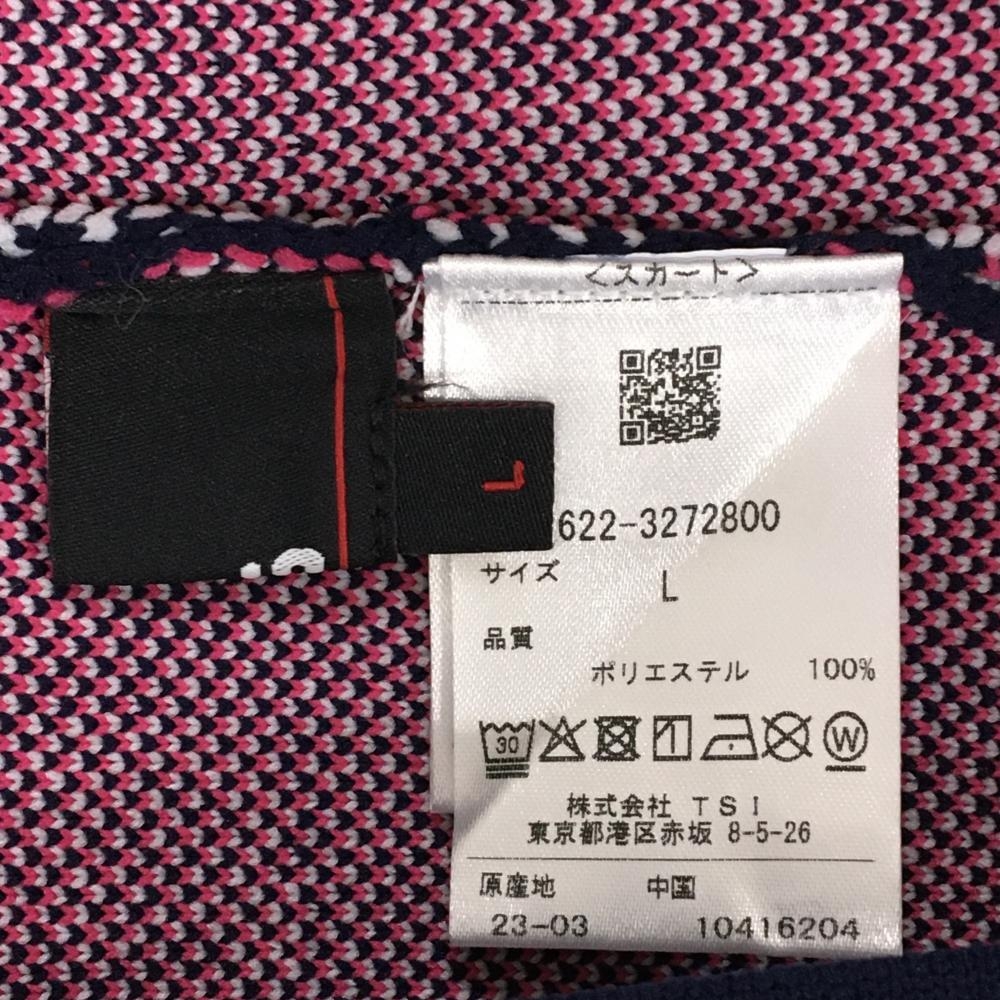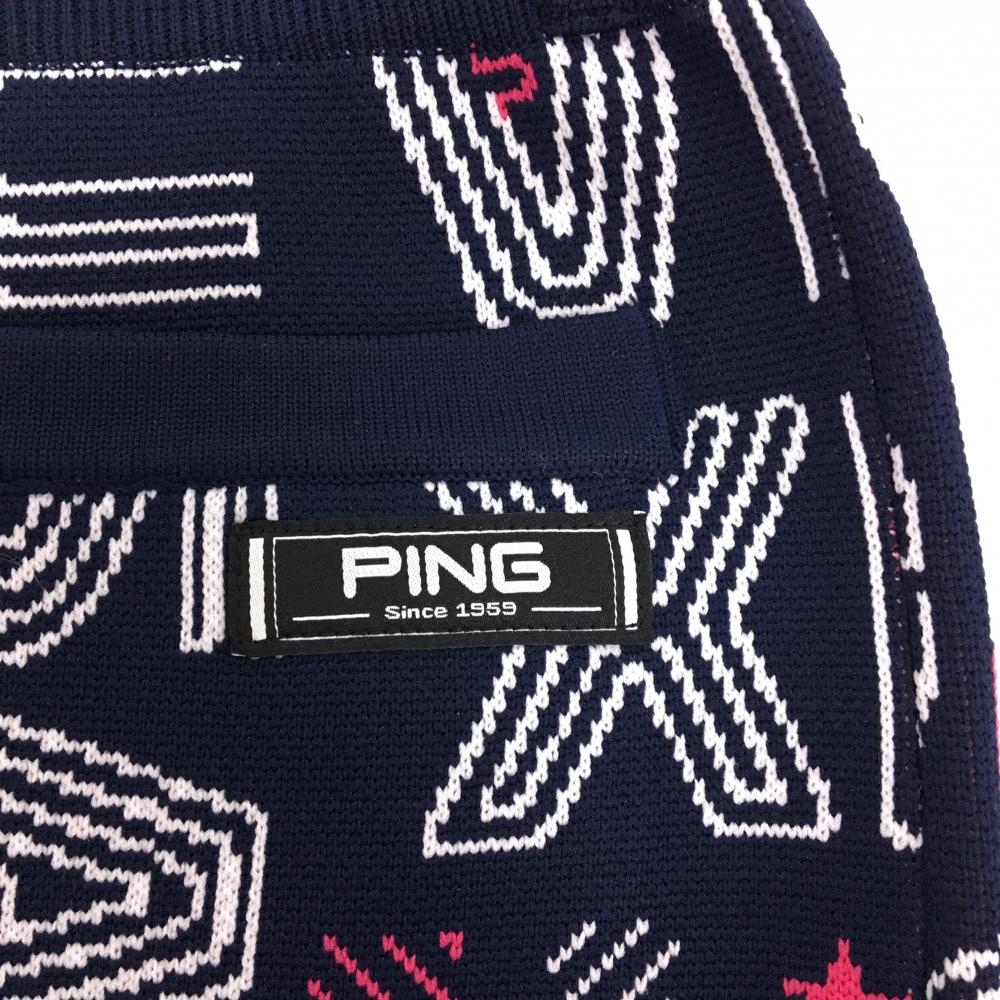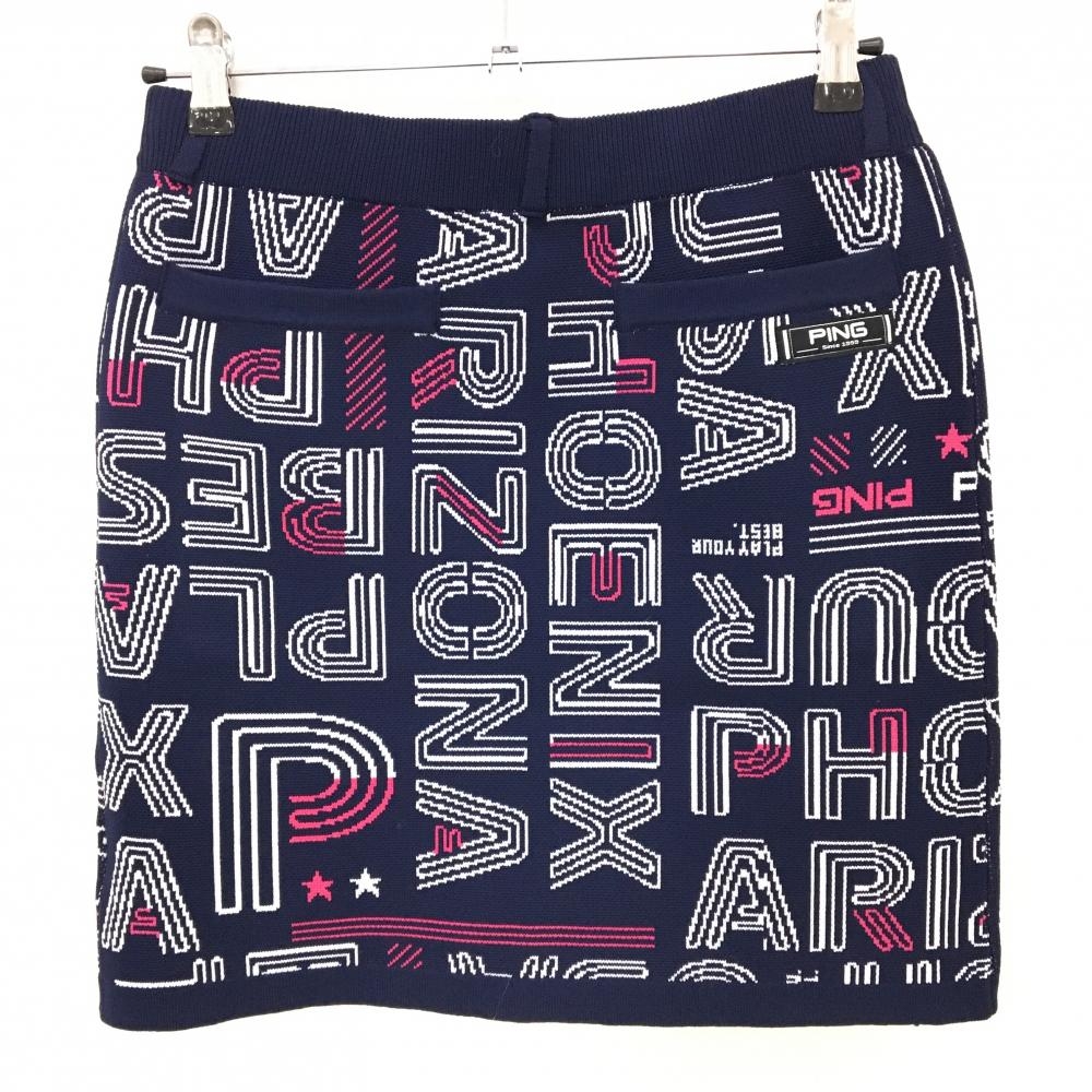 【超美品】ピン ニットスカート ネイビー×白×ピンク 英字総柄 レディース L ゴルフウェア PING