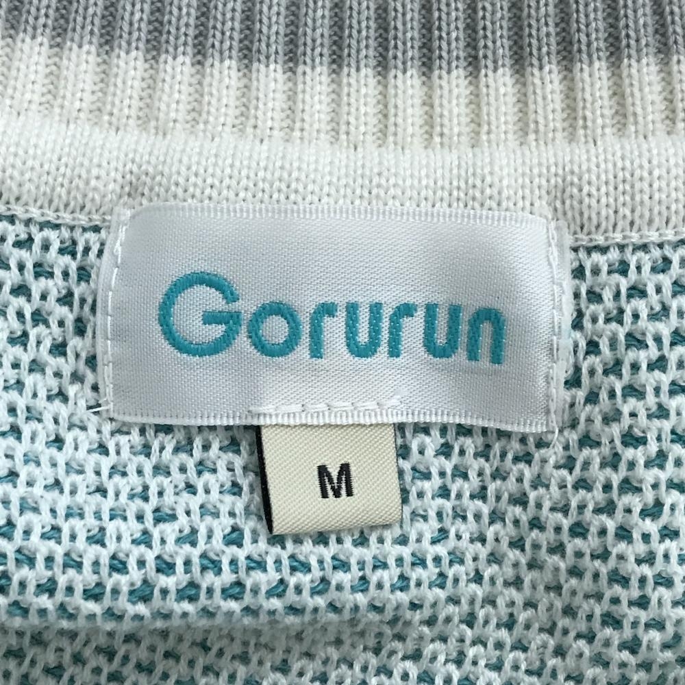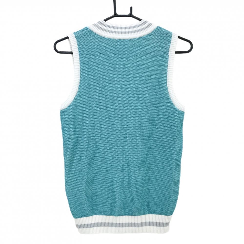 【超美品】ゴルラン ニットベスト ミントグリーン×白 コットン混 レディース M ゴルフウェア Gorurun