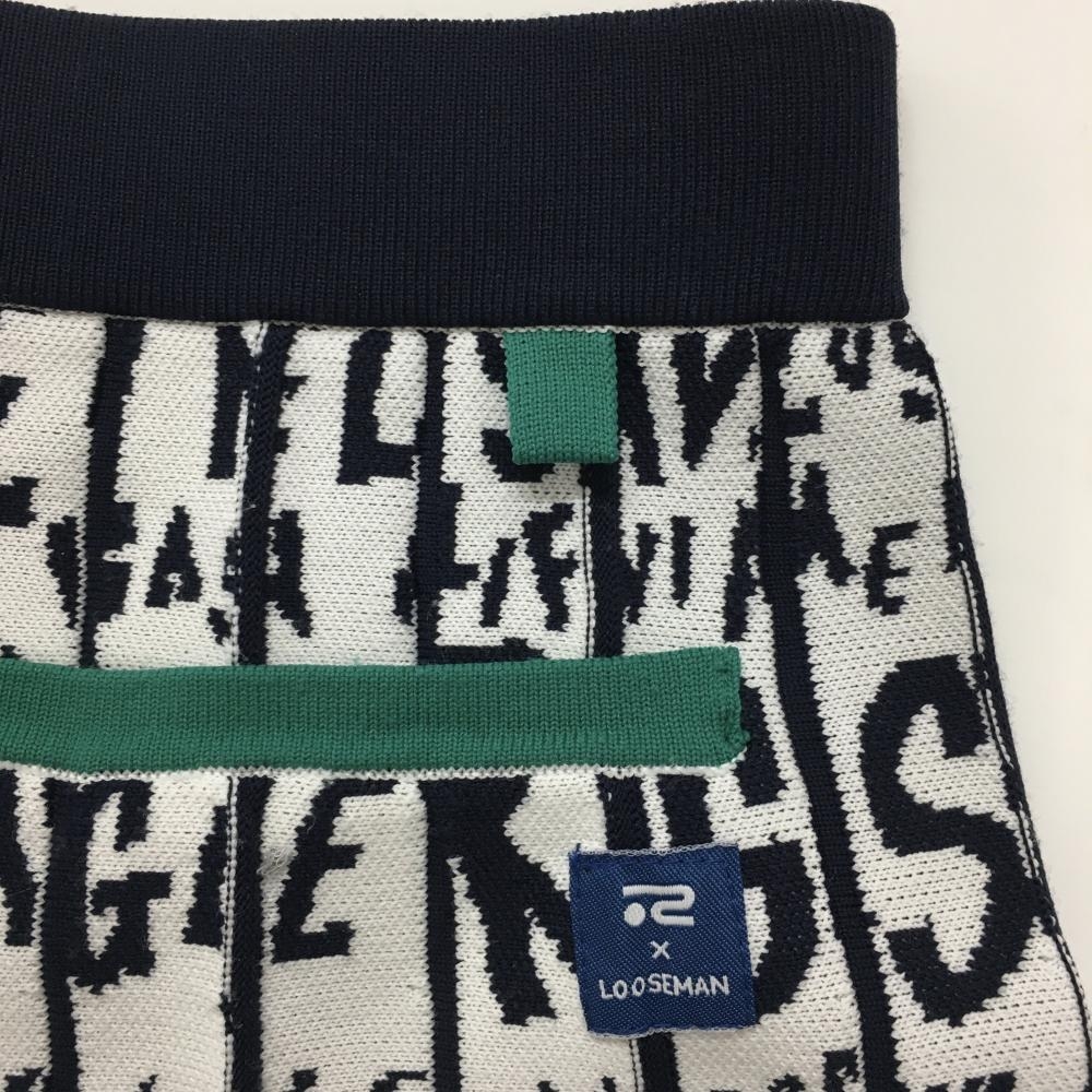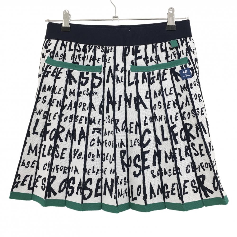 【美品】ロサーセン ニットスカート 白×ネイビー 英字総柄 レディース M ゴルフウェア Rosasen