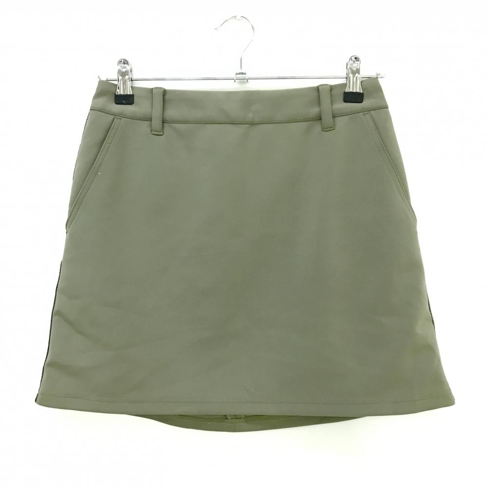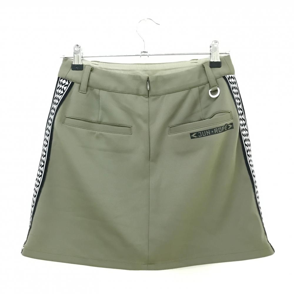 【超美品】ジュンアンドロペ ストレッチスカート カーキ×白 サイド柄ライン レディース M ゴルフウェア JUN&ROPE