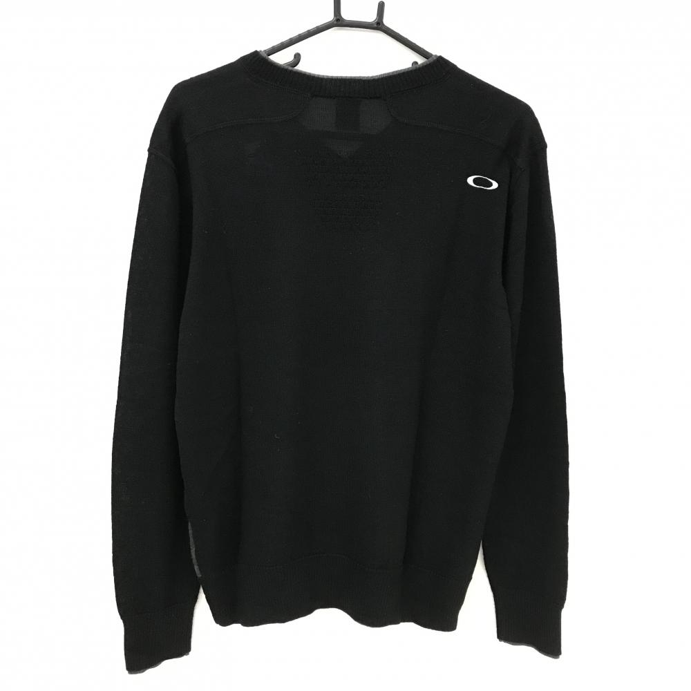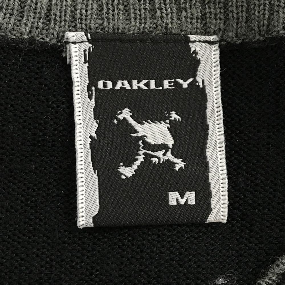 オークリー セーター グレー系×黒 身頃地模様 スカル刺しゅう ウール混 メンズ M ゴルフウェア Oakley