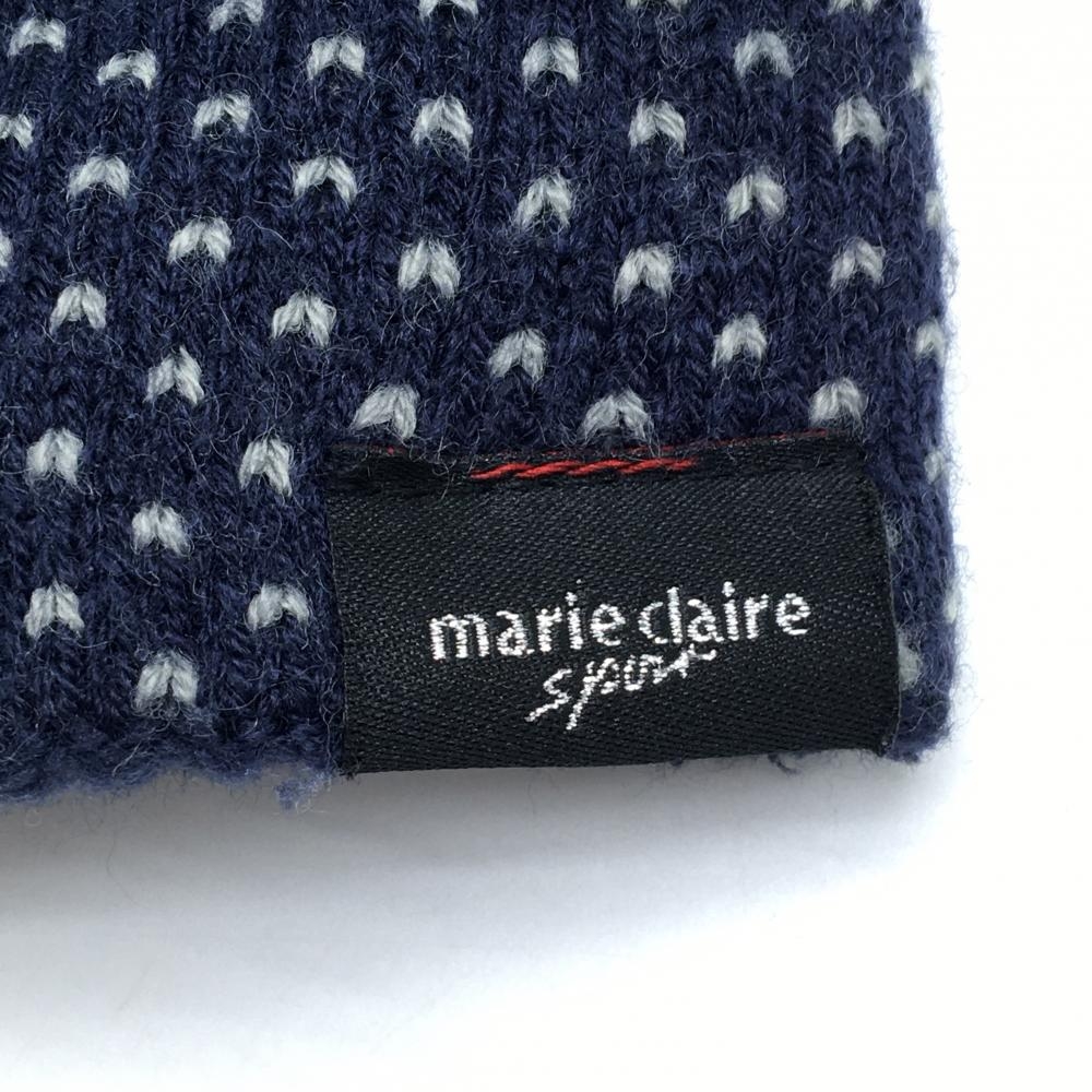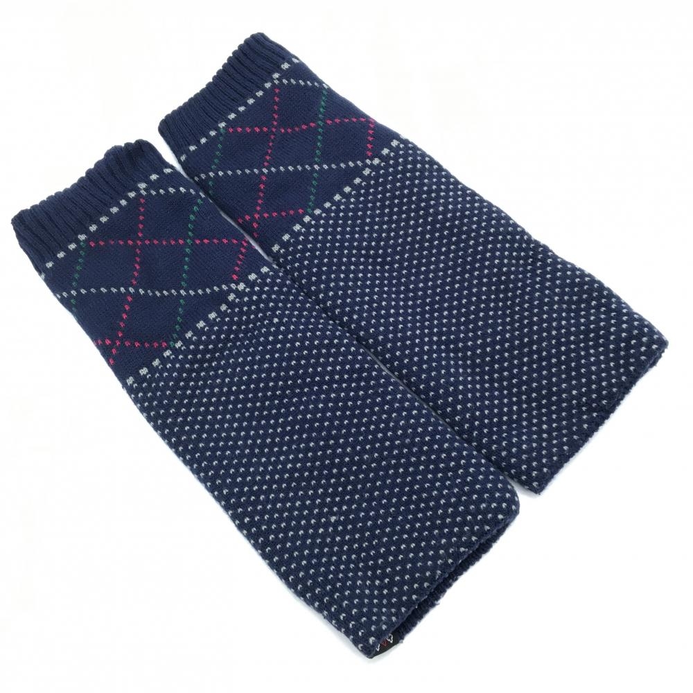 マリクレールスポール ニットレッグウォーマー ネイビー×グレー 一部格子柄 裏ボア レディース ゴルフウェア marie claire