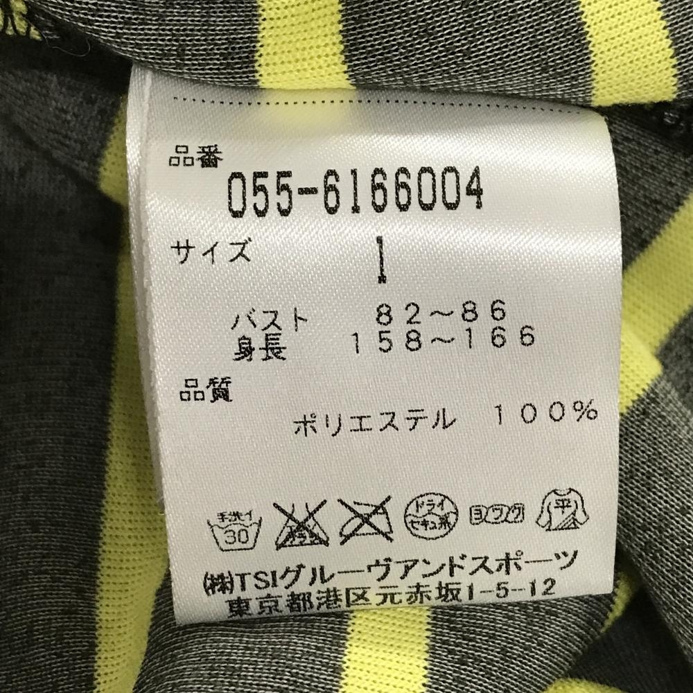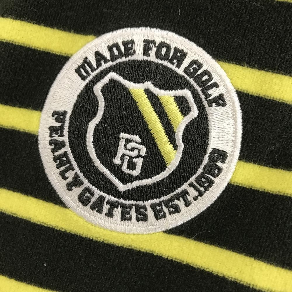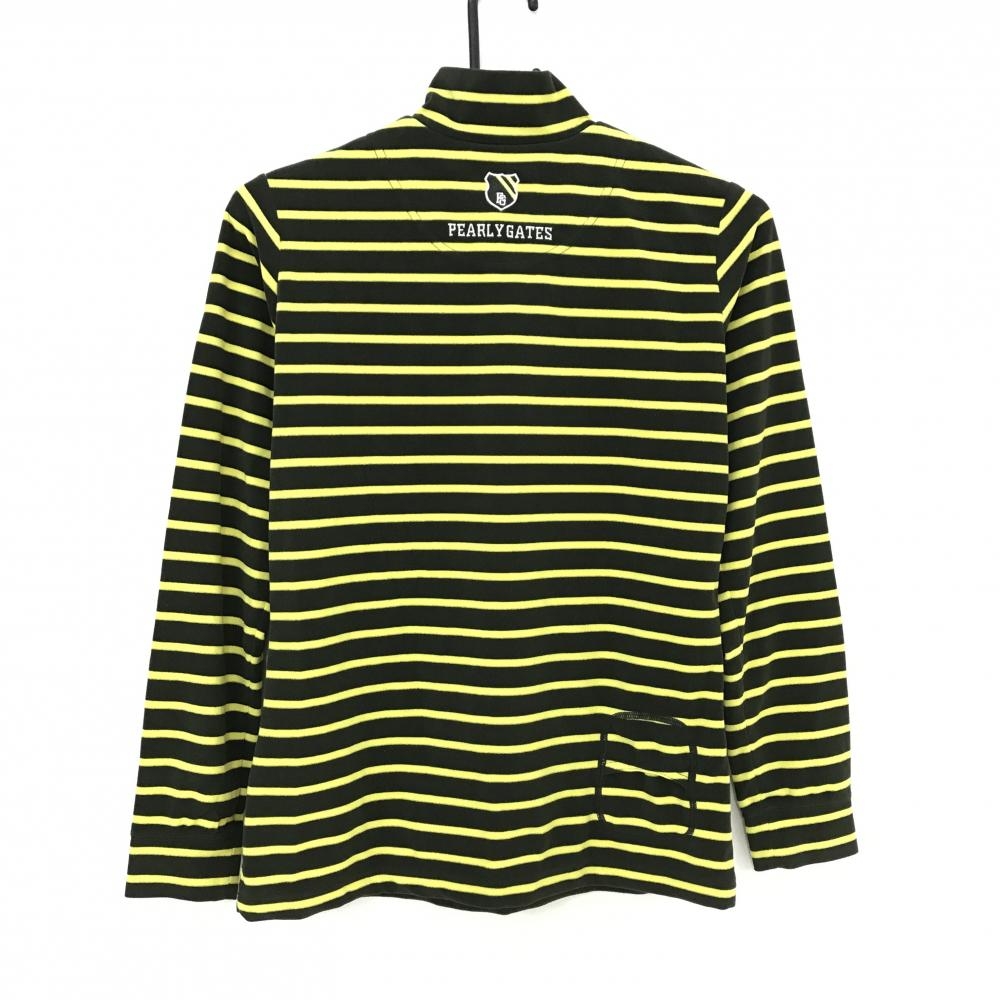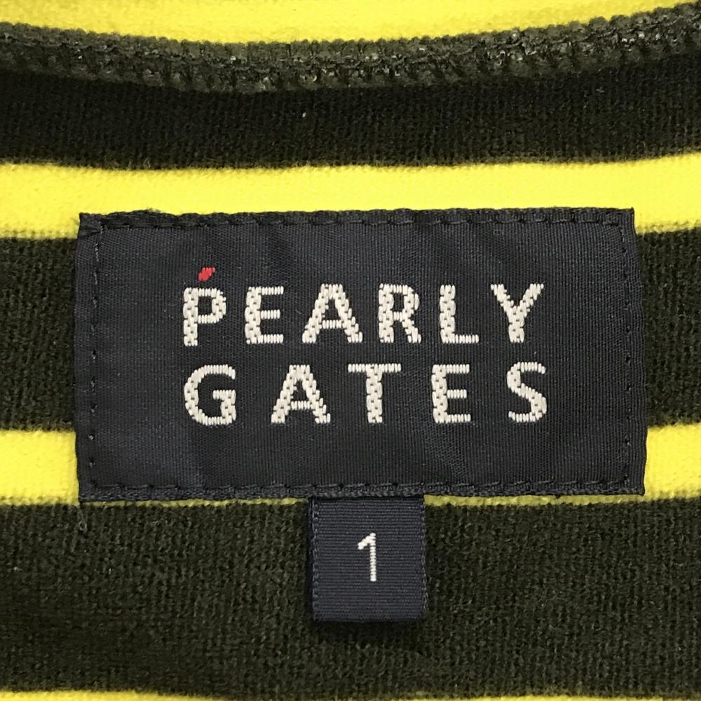 【超美品】パーリーゲイツ 長袖ハイネックシャツ カーキ×イエロー ボーダー 表起毛 レディース 1(M) ゴルフウェア PEARLY GATES