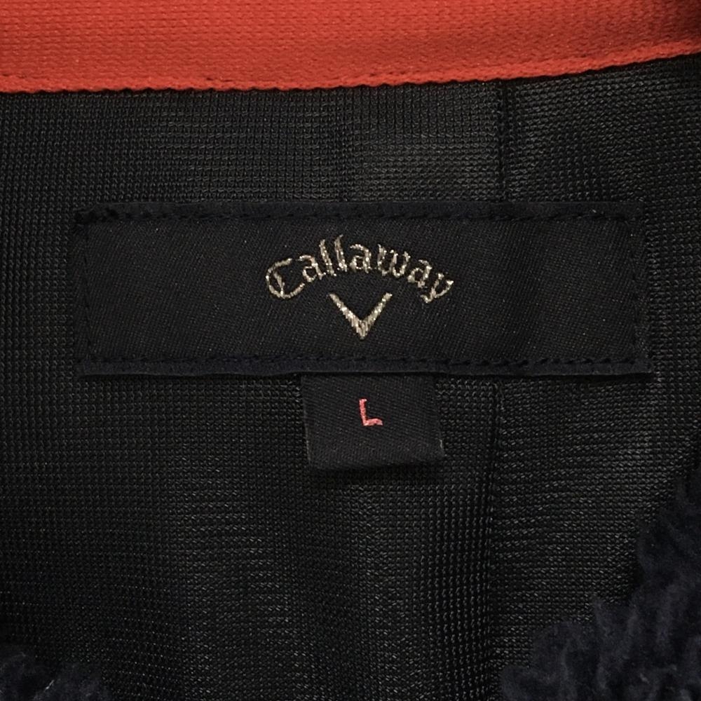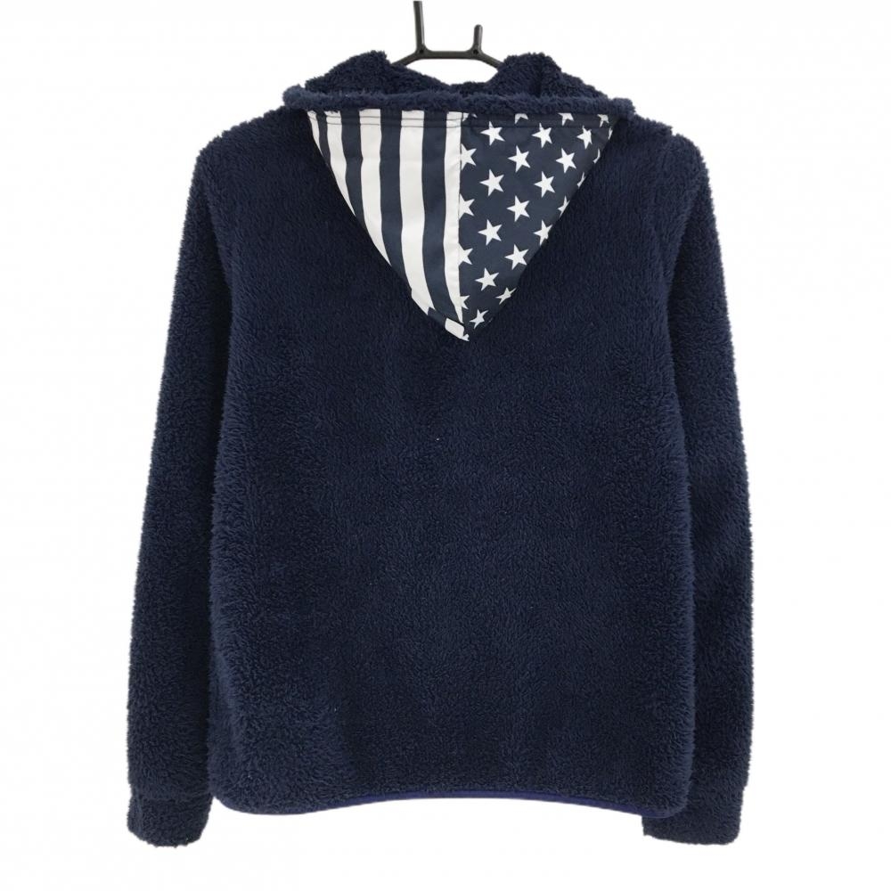 【美品】キャロウェイ ボアジップジャケット ネイビー×白×レッド フード柄 胸ロゴ レディース L ゴルフウェア Callaway
