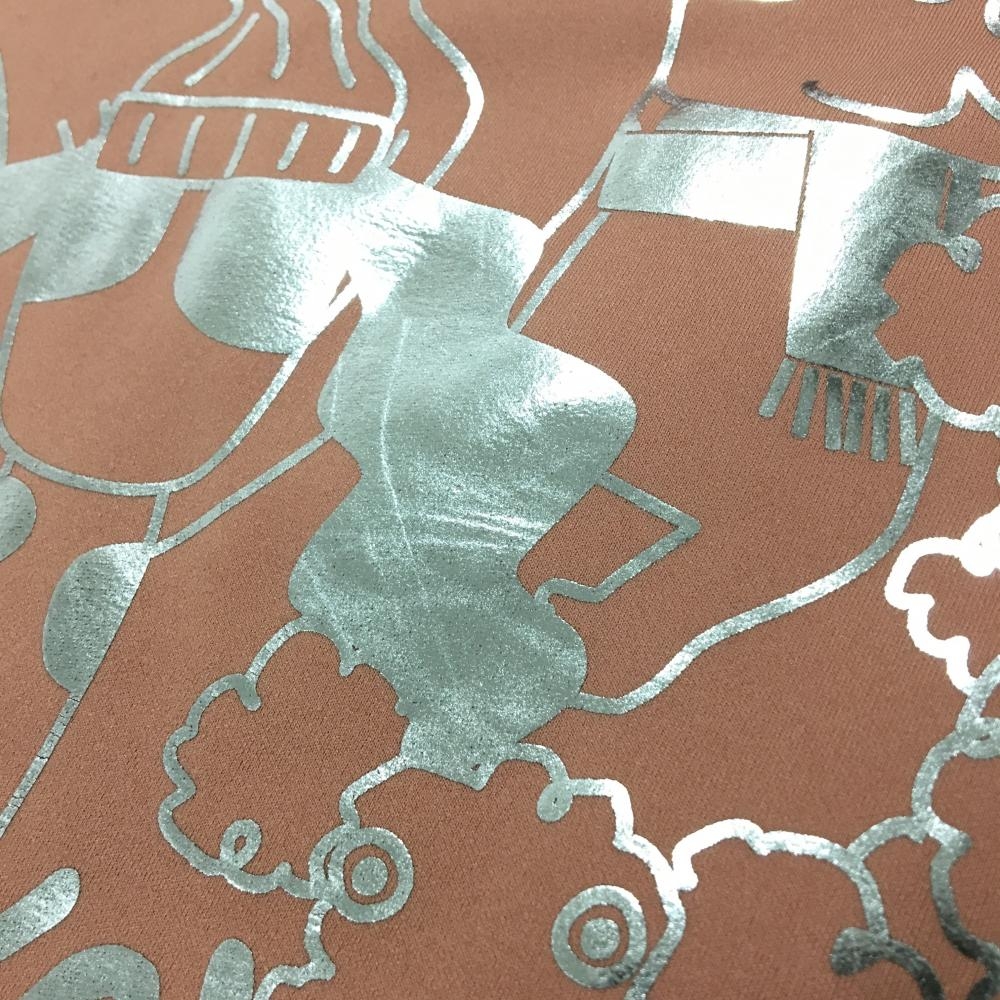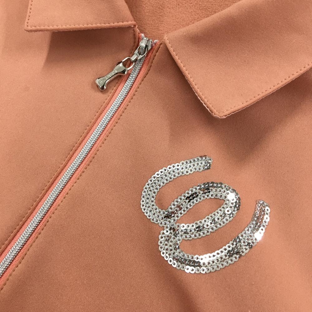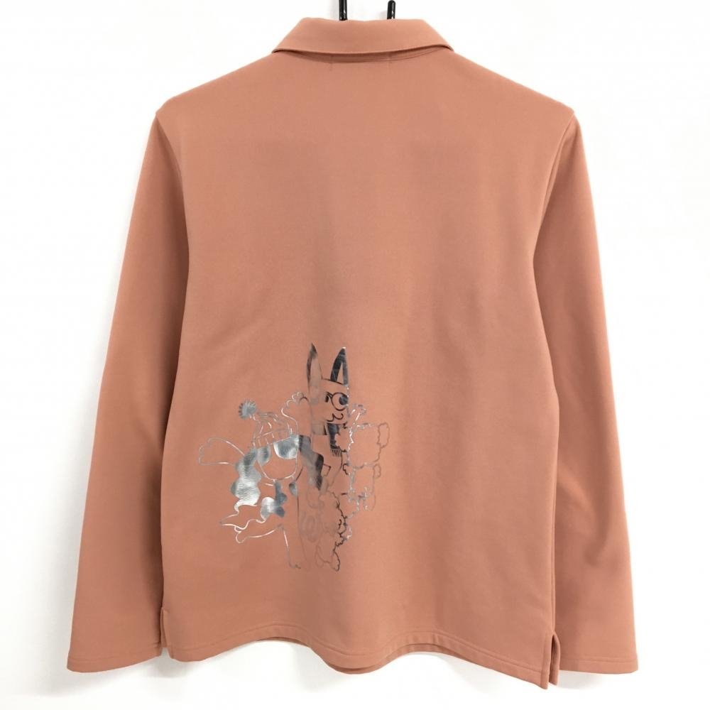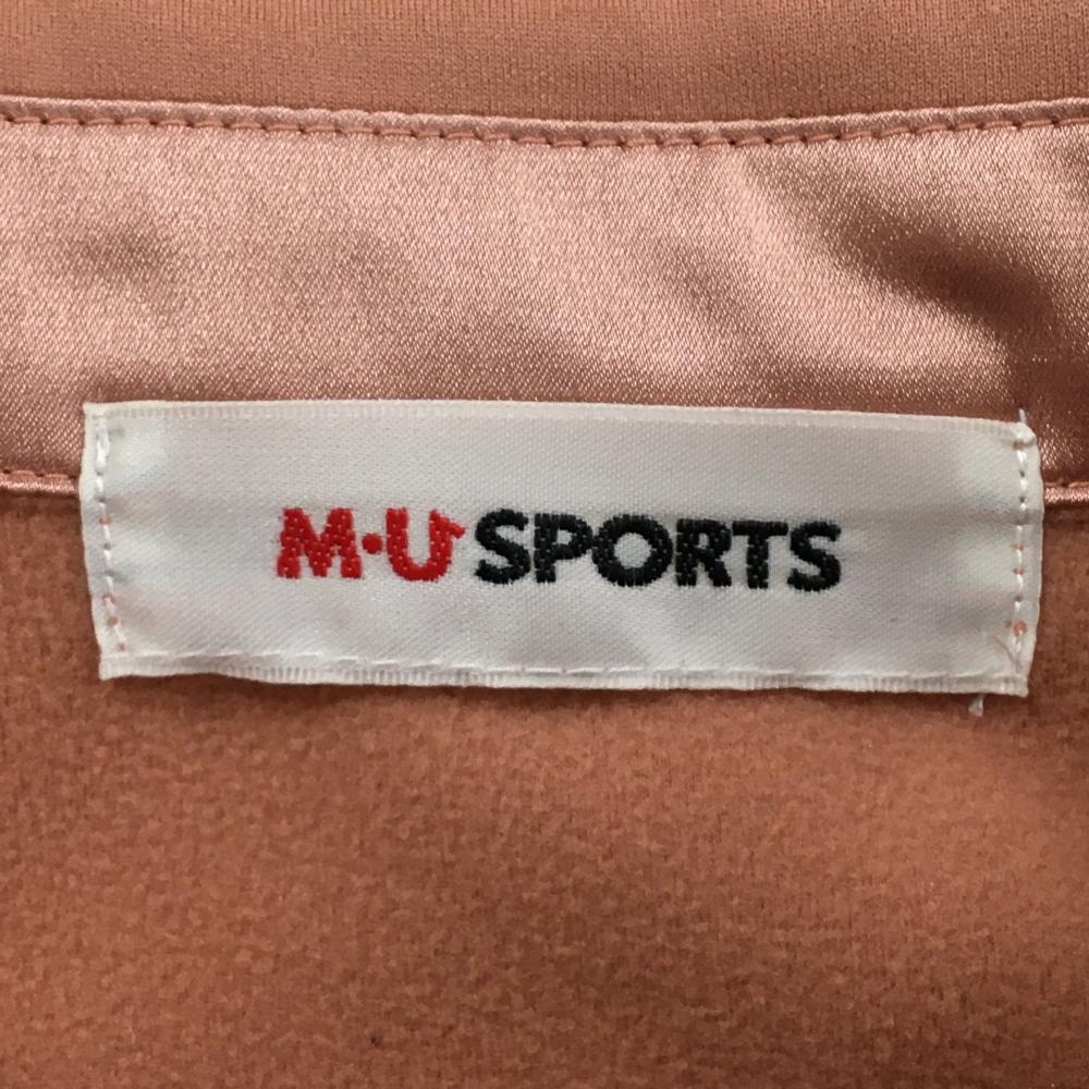 【美品】MUスポーツ 長袖ポロシャツ ピンクベージュ系×シルバー ハーフジップ レディース サイズ表記無し ゴルフウェア M・U SPORTS