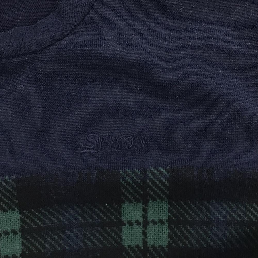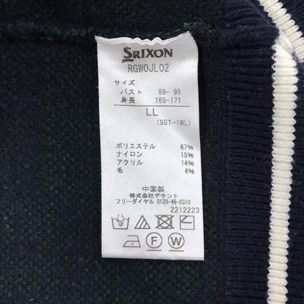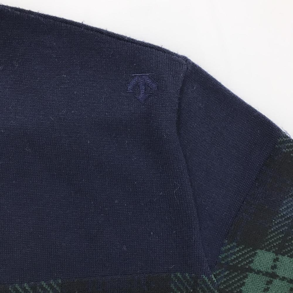 スリクソンバイデサント セーター ネイビー×グリーン チェック柄 ロゴ刺しゅう ウール混 ニット レディース LL ゴルフウェア SRIXON
