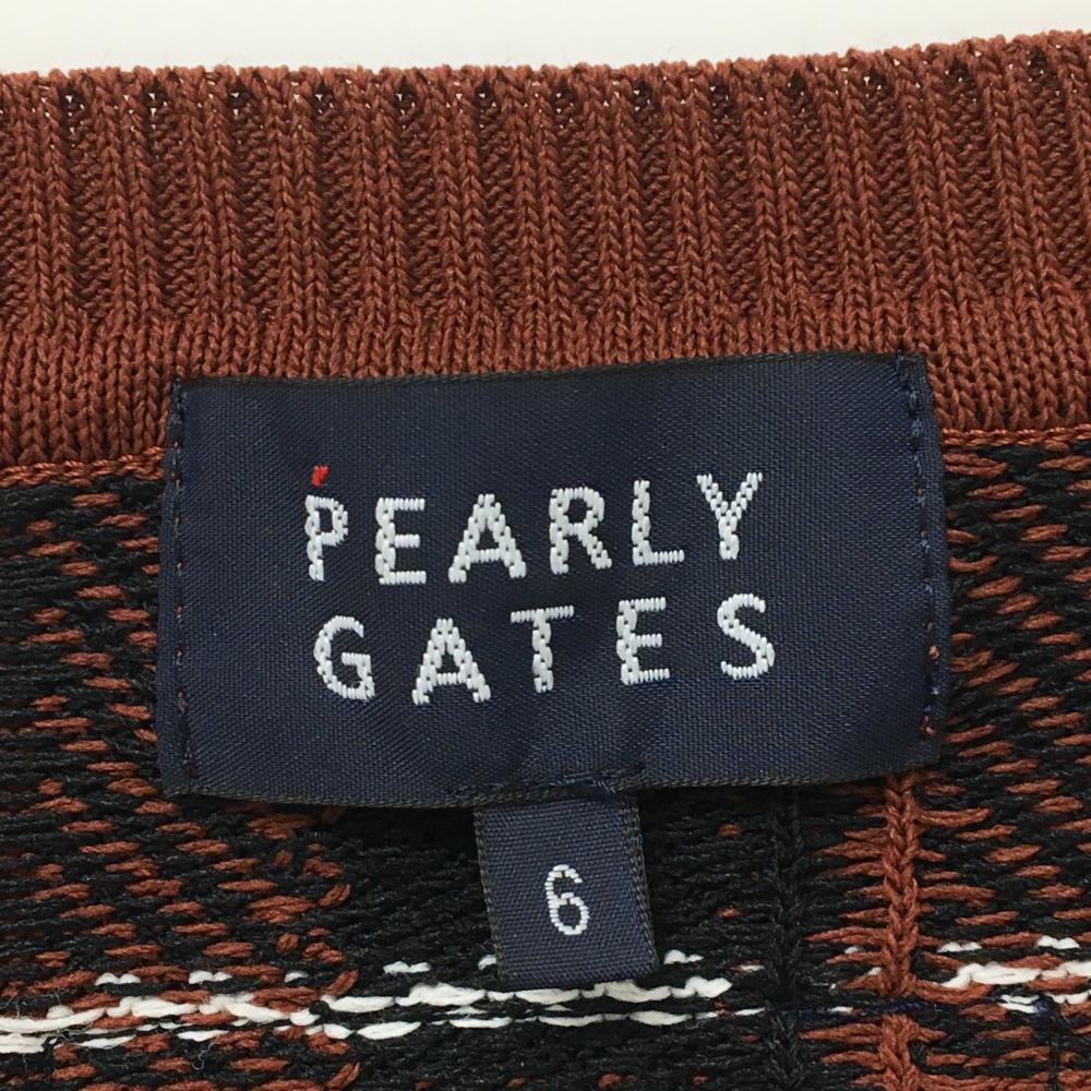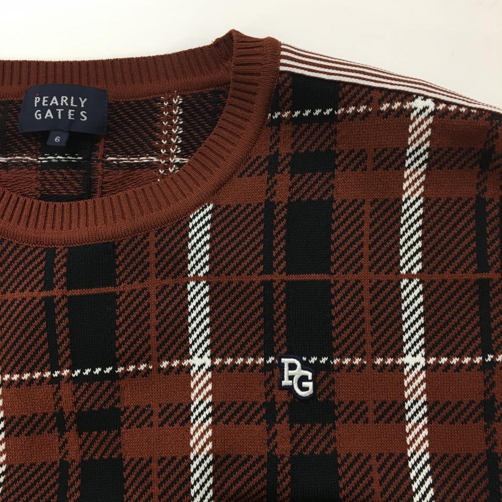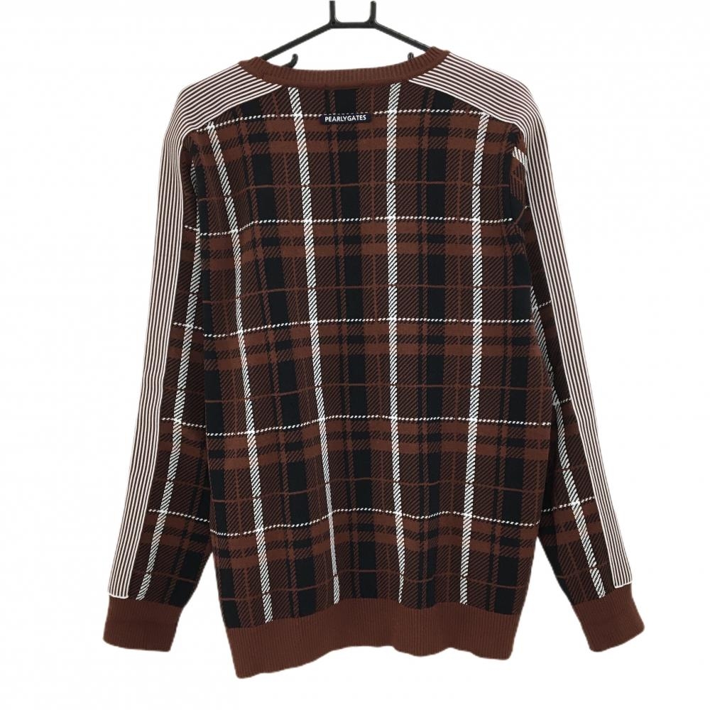 【超美品】パーリーゲイツ セーター ブラウン×黒×白 チェック コットン混 ニット メンズ 6(XL) ゴルフウェア PEARLY GATES
