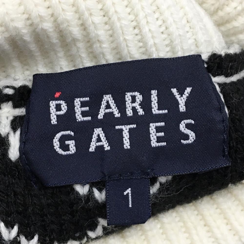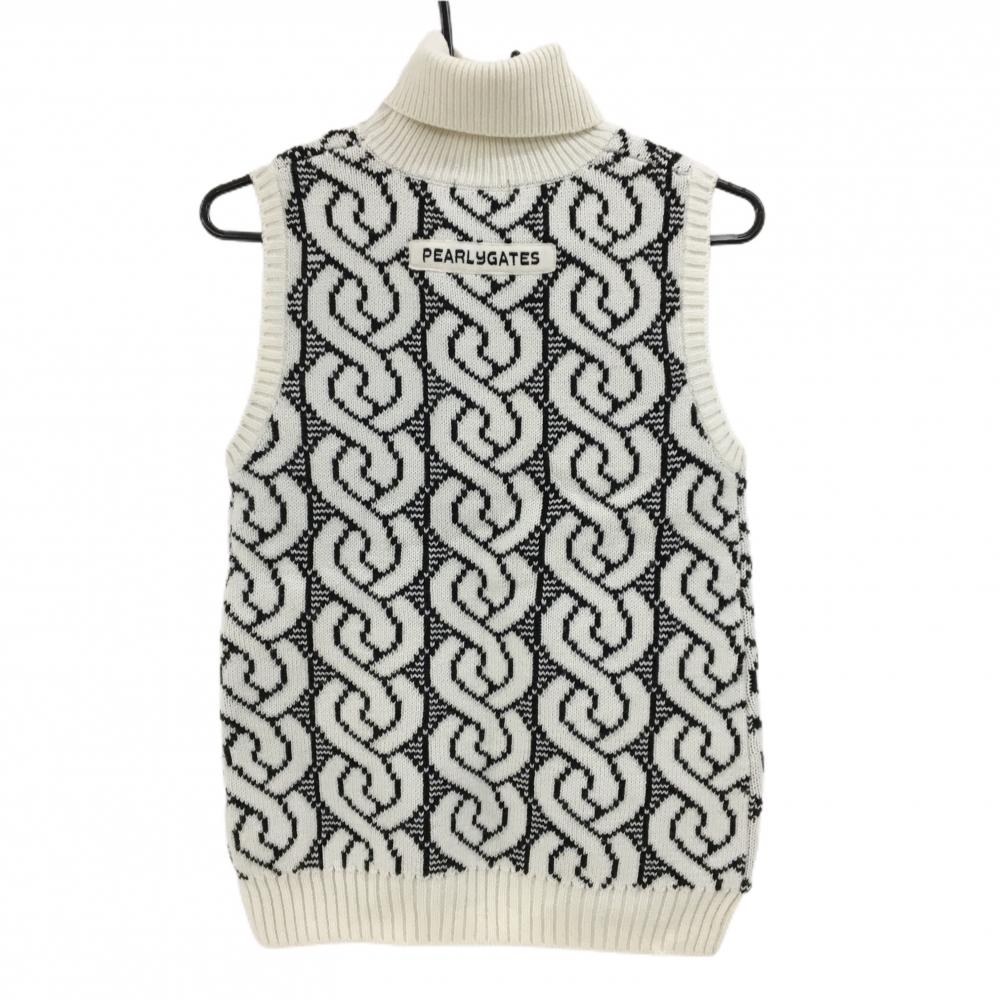 パーリーゲイツ タートルネックニットベスト 白×黒 総柄 胸ロゴ ウール混 レディース 1(M) ゴルフウェア PEARLY GATES