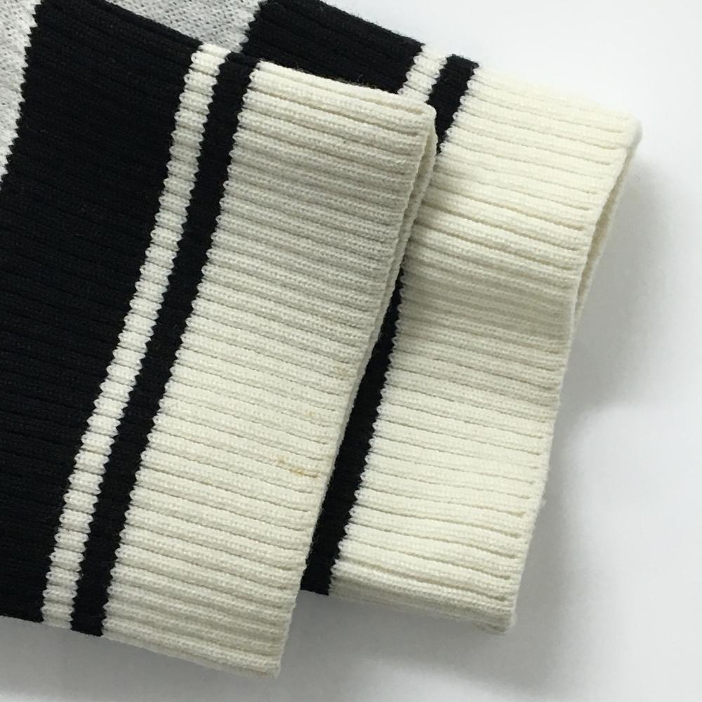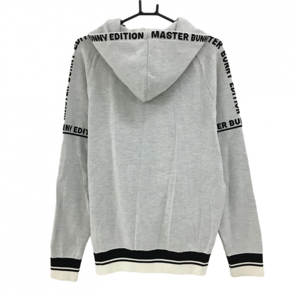 【美品】マスターバニー ニットジップパーカー 白×黒 袖フードロゴ ウール混 ブルゾン メンズ 6(XL) ゴルフウェア MASTER BUNNY EDITION
