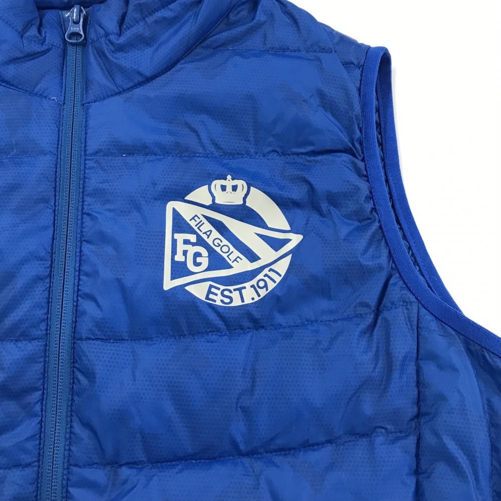 【美品】フィラゴルフ ダウンベスト ブルー 迷彩風 カモフラ 軽量 メンズ L ゴルフウェア FILA GOLF