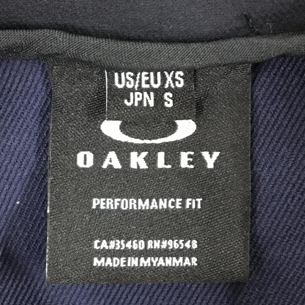 【美品】オークリー ジップパーカー ネイビー×黒 ロゴ白 裾ドローコード メンズ S ゴルフウェア Oakley