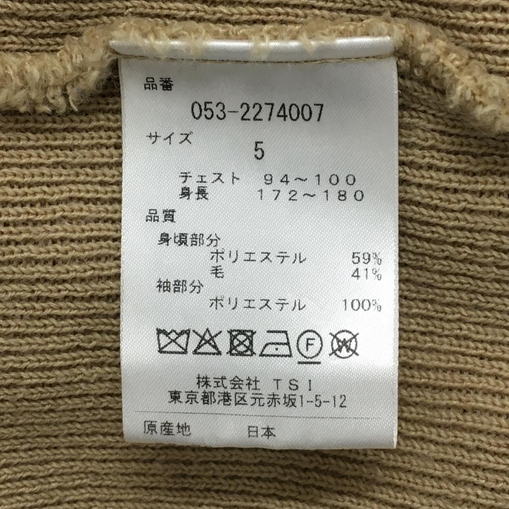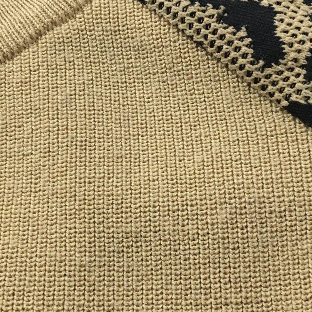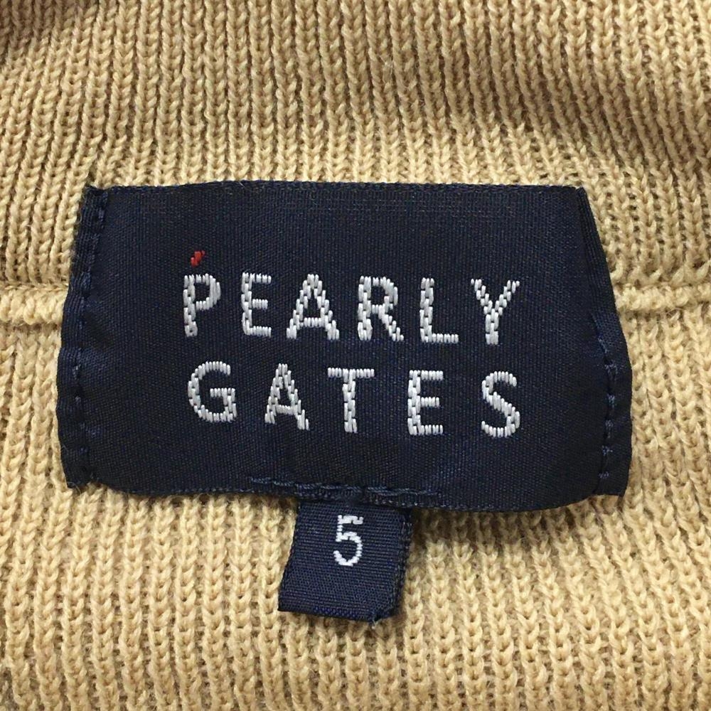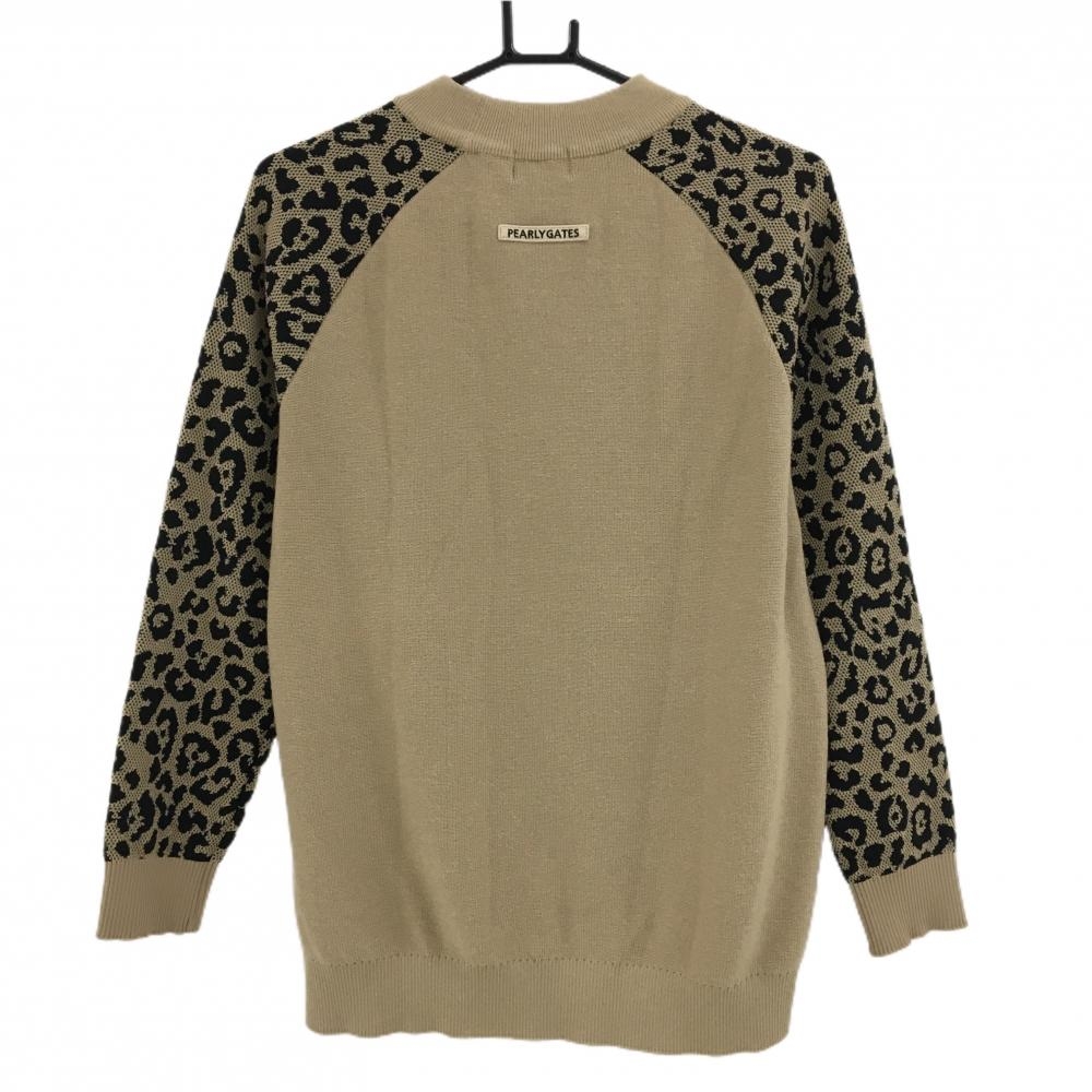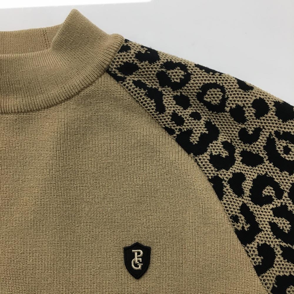 【美品】パーリーゲイツ セーター ライトブラウン×黒 袖レオパード柄 ウール混 ニット メンズ 5(L) ゴルフウェア PEARLY GATES