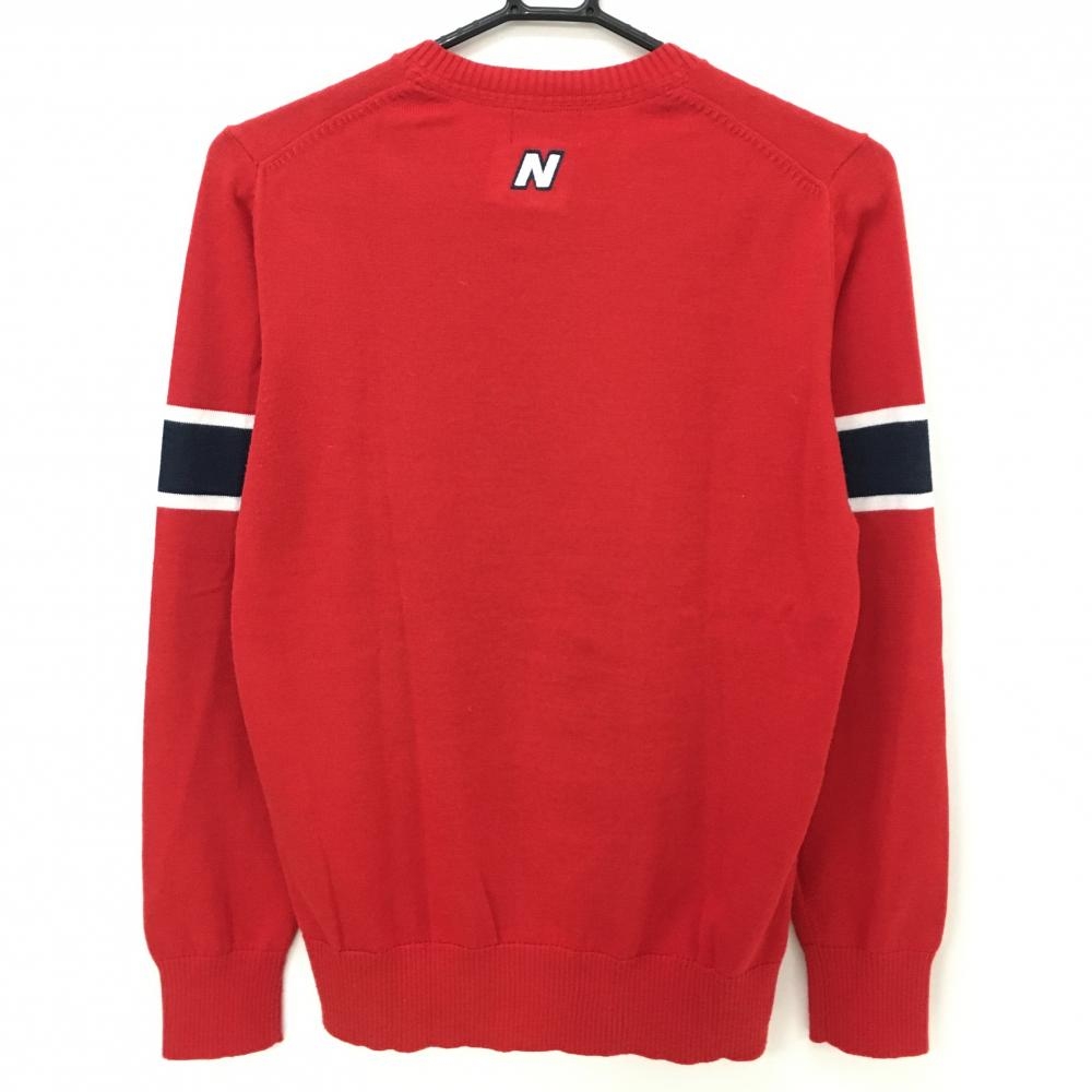 ニューバランスゴルフ セーター レッド×ネイビー 袖ライン ウール混 ニット レディース 2(L) ゴルフウェア New Balance